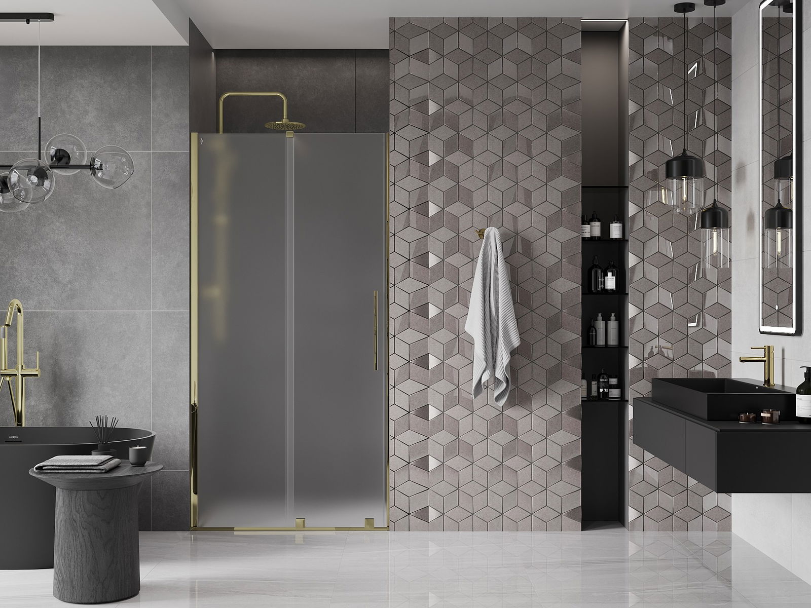 Mexen Velar sliding shower doors 90 cm, frosted, gold - 871-090-000-31-50