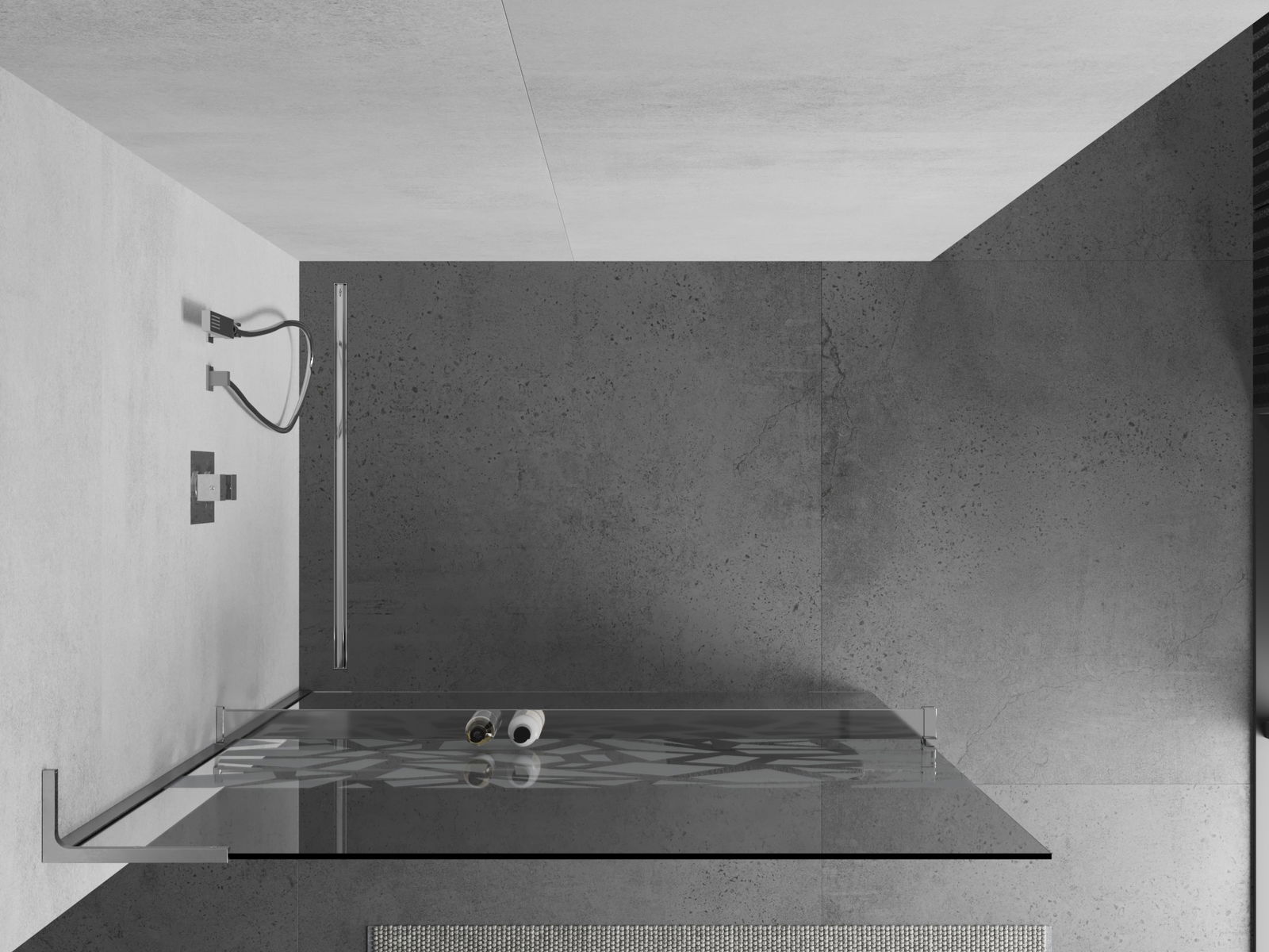 Mexen Kioto+ L shower wall with Walk-in shelf 110 x 200 cm, white pattern, chrome - 800-110-123-01-85