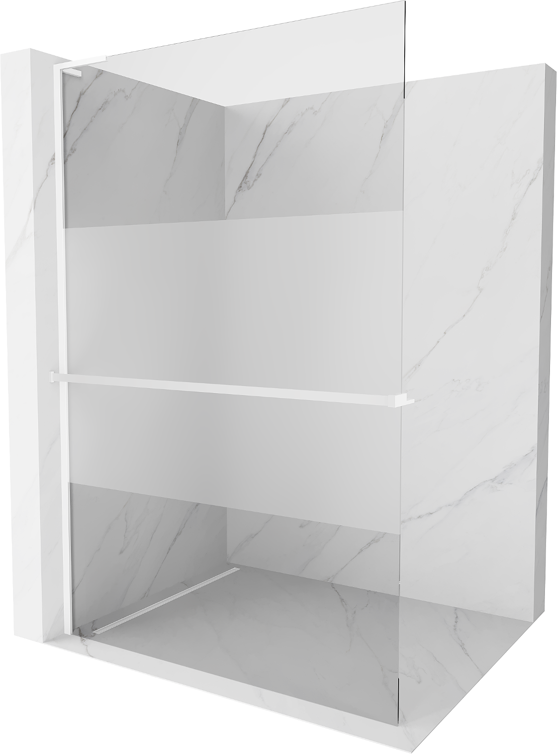 Mexen Kioto+ L shower wall with Walk-in shelf 90 x 200 cm, transparent/frosted, white - 800-090-123-20-35