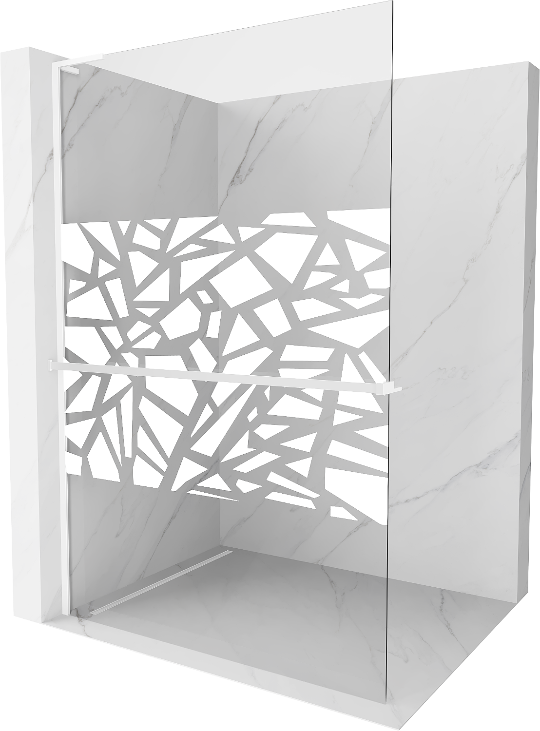 Mexen Kioto+ L Shower Panel with Shelf Walk-in 120 x 200 cm, White Pattern, White - 800-120-123-20-85