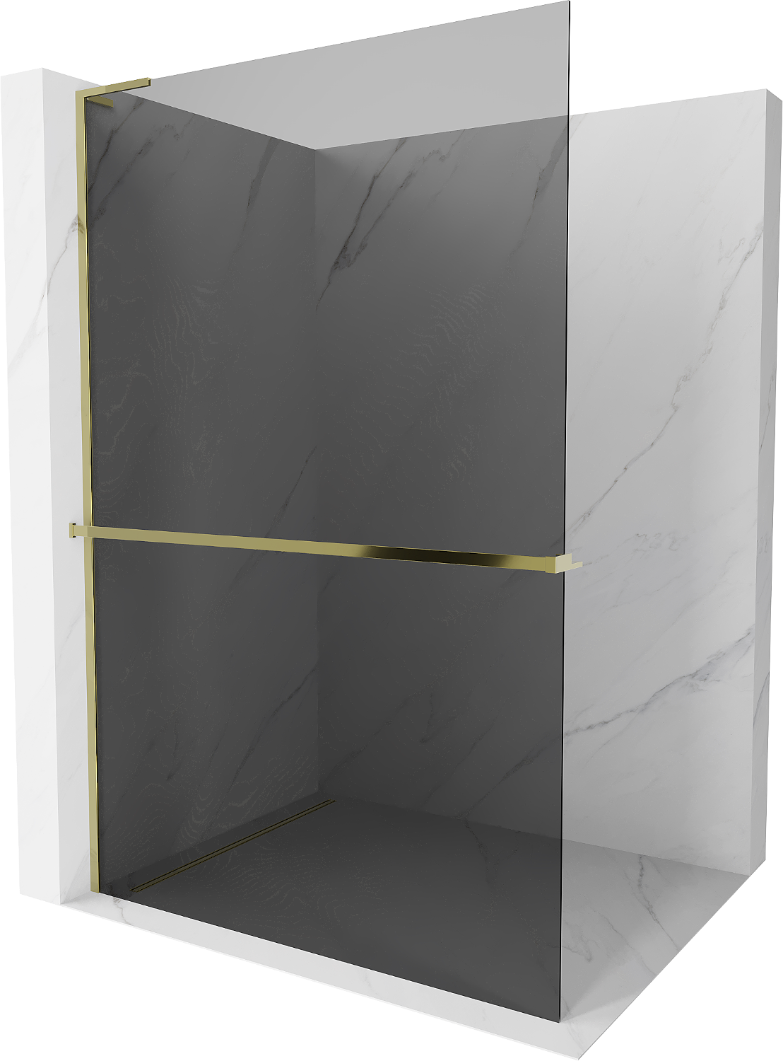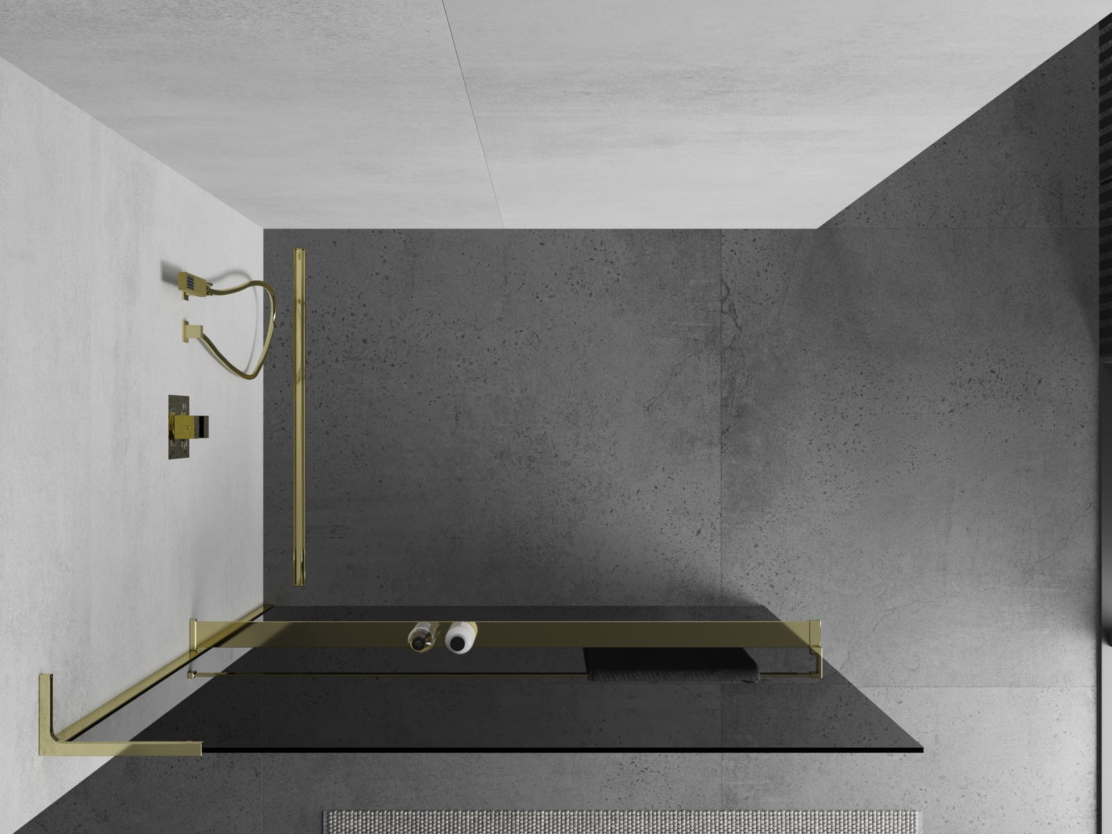 Mexen Kioto+ L shower wall with Walk-in shelf 100 x 200 cm, graphite, gold - 800-100-123-50-40