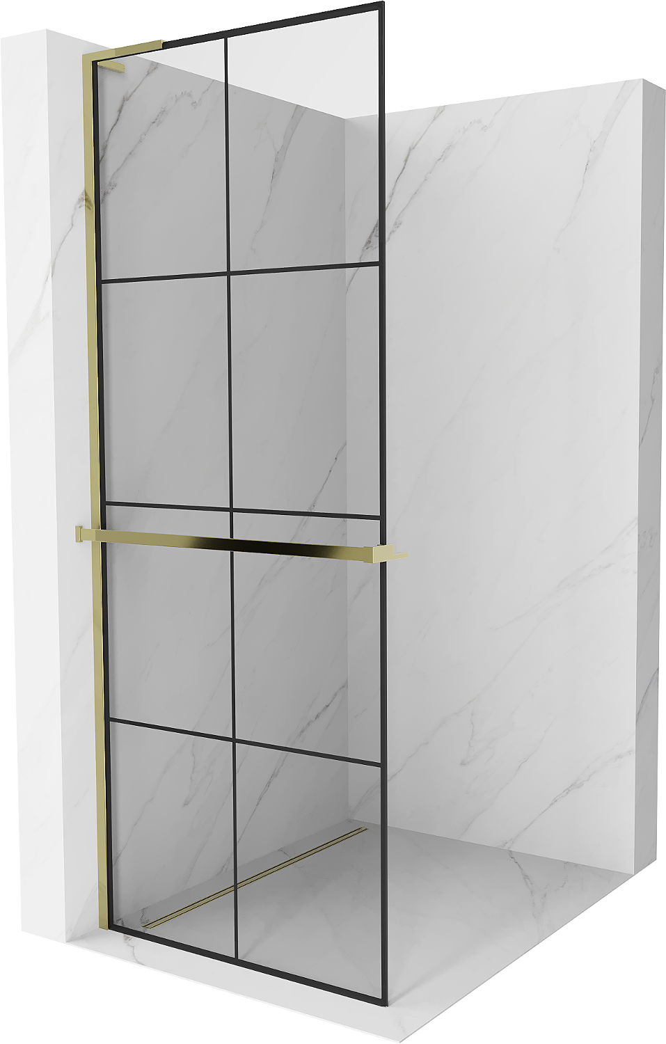 Mexen Kioto+ L shower panel with shelf Walk-in 90 x 200 cm, black grid, gold - 800-090-123-50-77