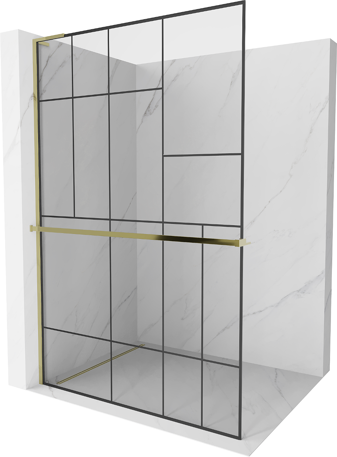 Mexen Kioto+ L Shower Wall with Shelf Walk-in 90 x 200 cm, Black Pattern, Gold - 800-090-123-50-78