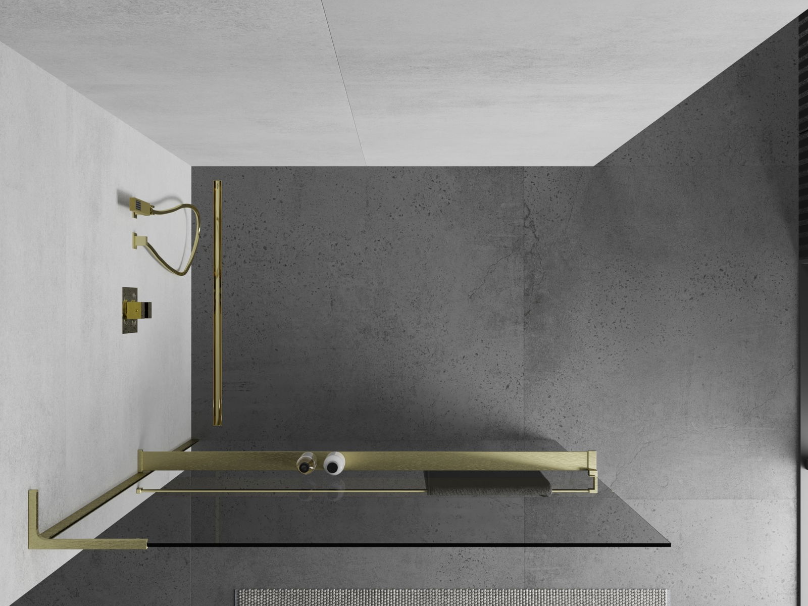 Mexen Kioto+ L shower screen with Walk-in shelf 105 x 200 cm, transparent, brushed gold - 800-105-123-55-00