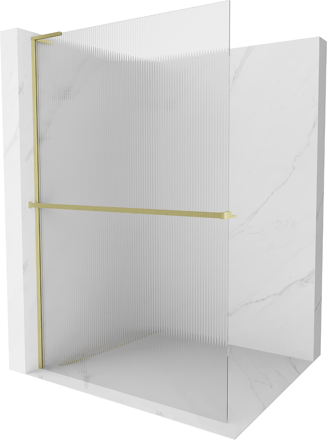 Mexen Kioto+ L Shower Wall with Shelving Walk-in 70 x 200 cm, Clear Glass, Brushed Gold - 800-070-123-55-09