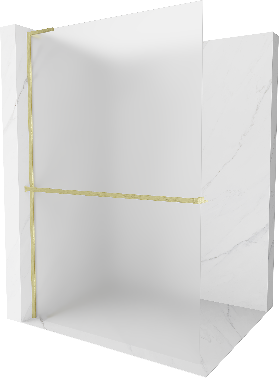 Mexen Kioto+ L Shower Wall with Shelf Walk-in 80 x 200 cm, Frosted, Brushed Gold - 800-080-123-55-30