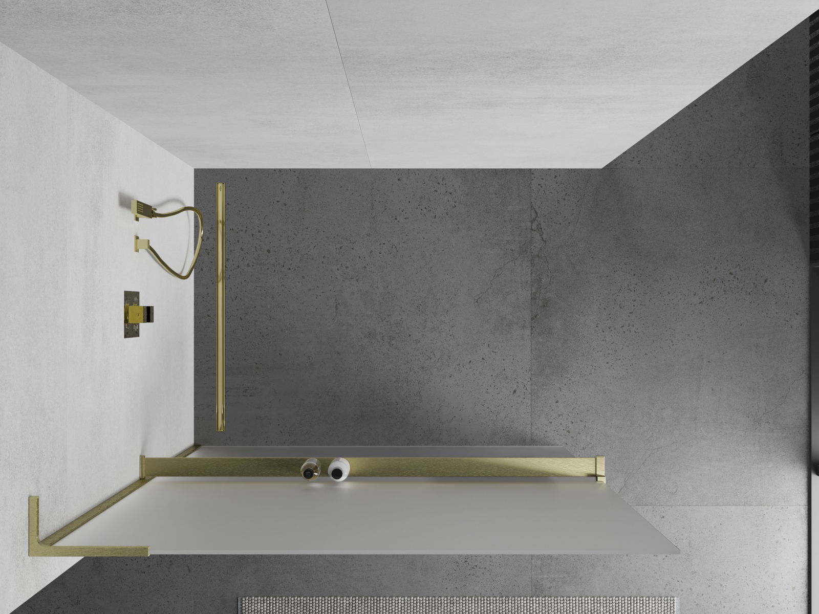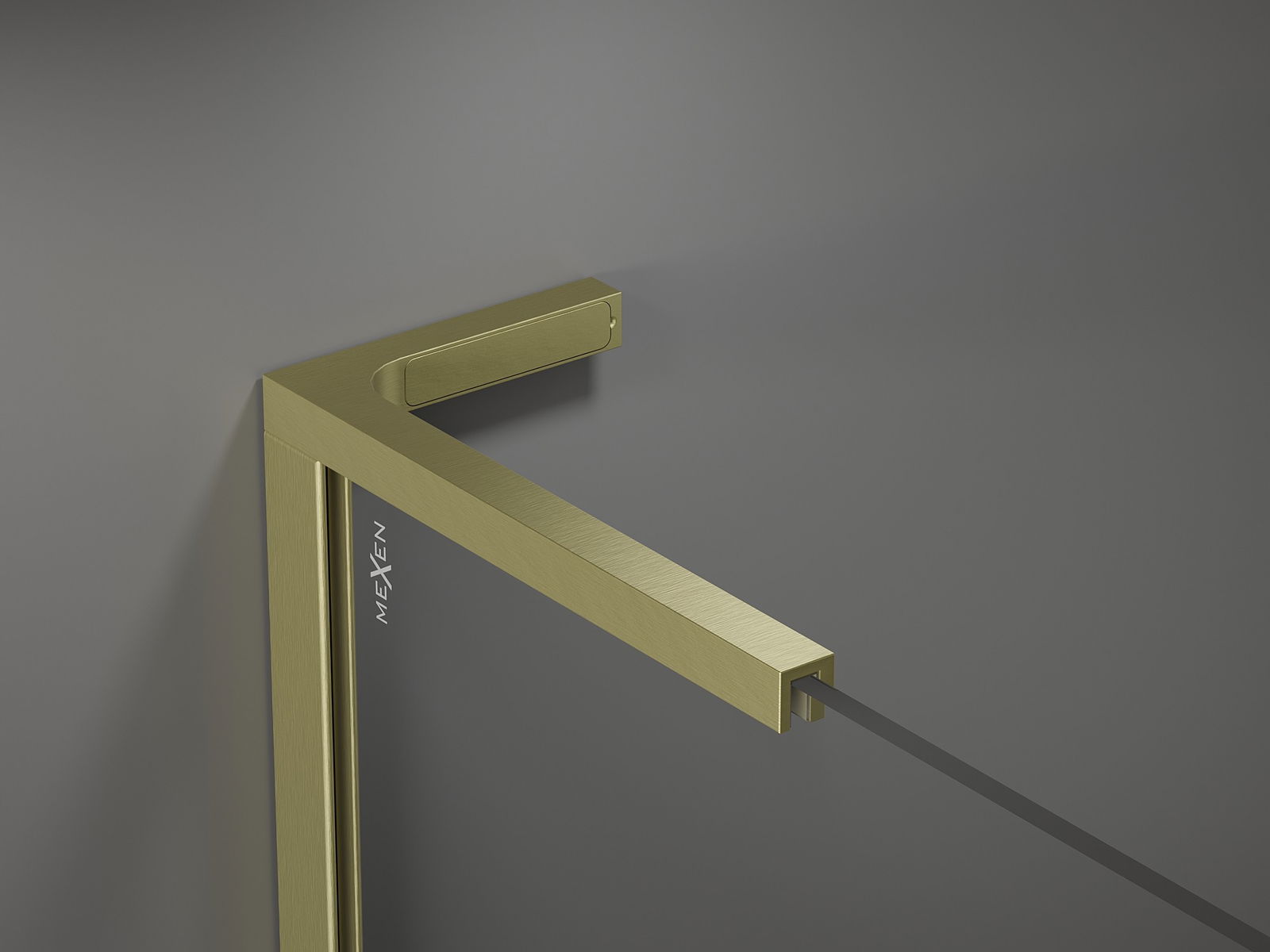 Mexen Kioto+ L shower wall with shelf Walk-in 100 x 200 cm, frosted, brushed gold - 800-100-123-55-30
