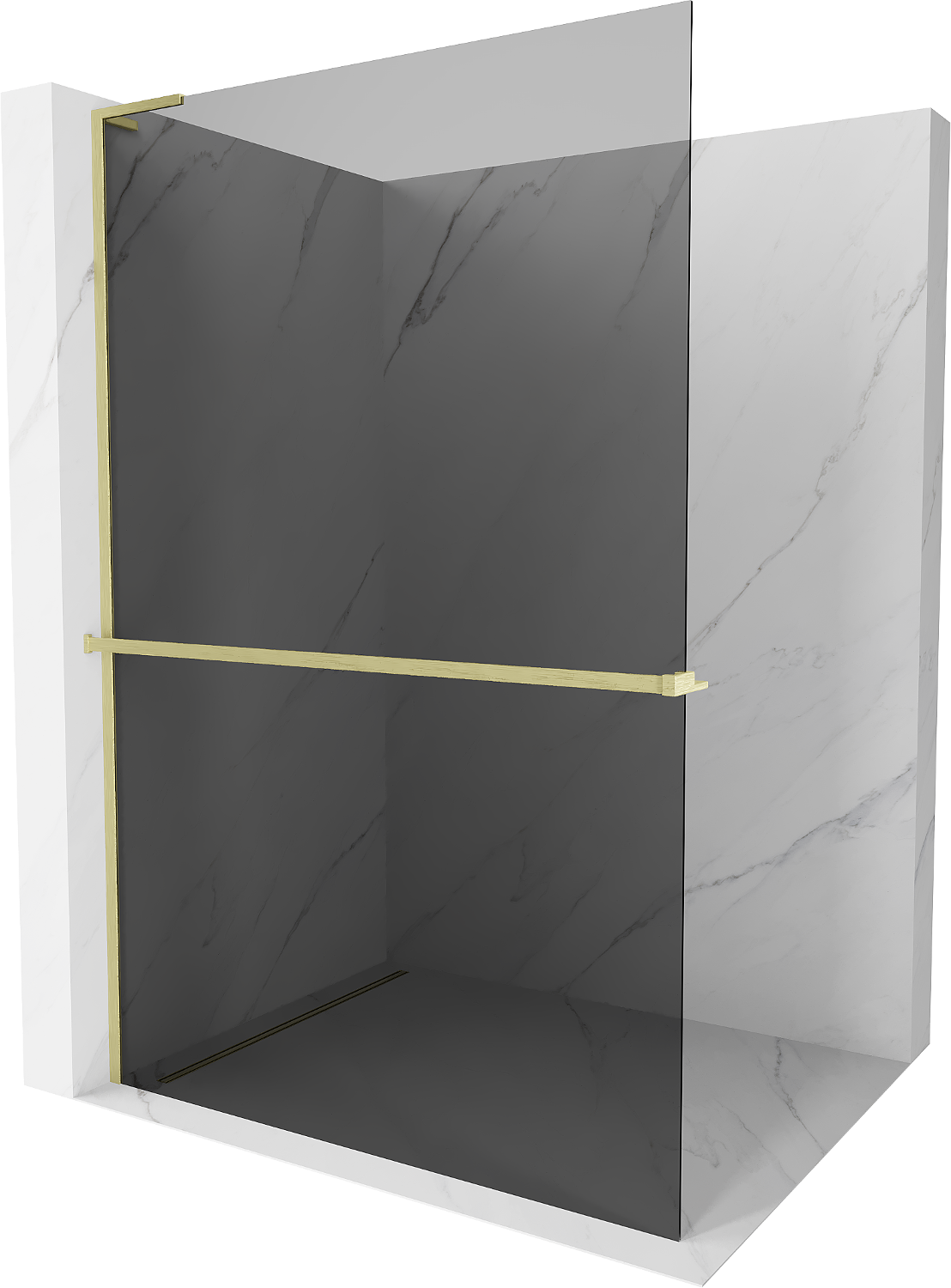 Mexen Kioto+ L shower wall with shelf Walk-in 80 x 200 cm, graphite, brushed gold - 800-080-123-55-40