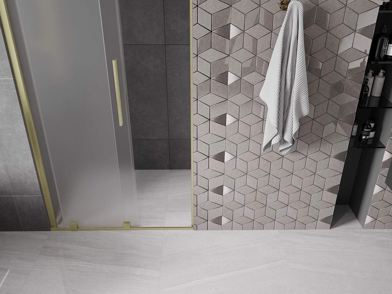 A handy and convenient handle made of stainless steel. The stylish shape combined with a finish that matches the color of the profiles gives a modern and stylish look, highlighting the aesthetics of any bathroom.