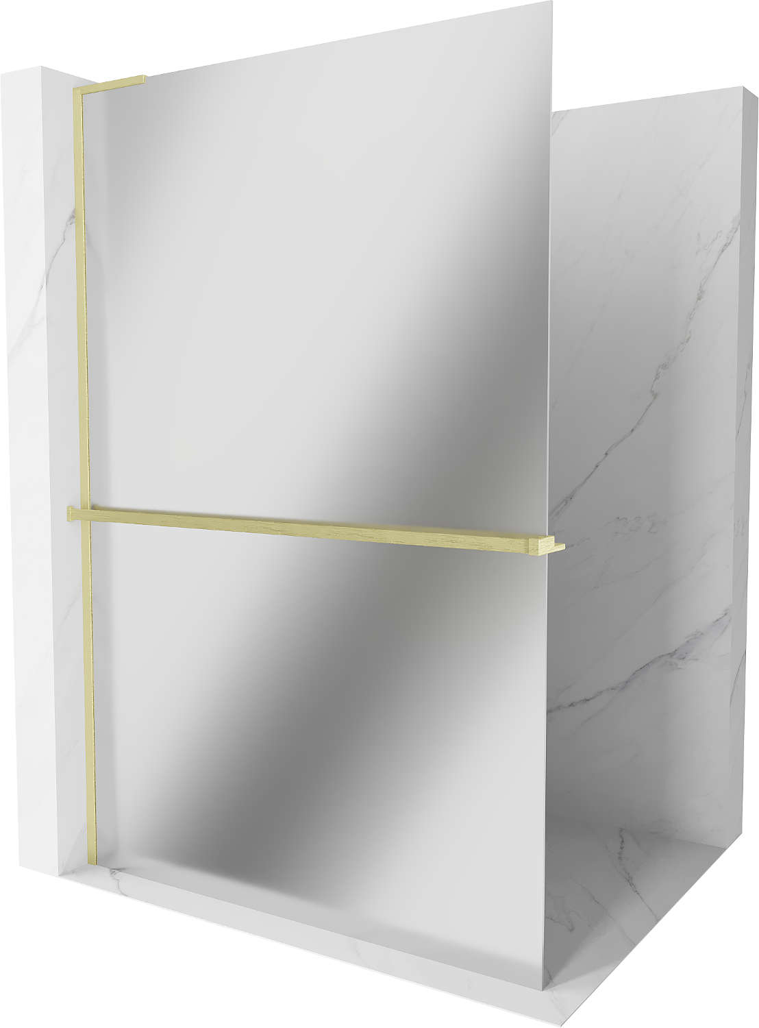 Mexen Kioto+ L Shower Wall with Shelf Walk-in 80 x 200 cm, Mirror, Brushed Gold - 800-080-123-55-50