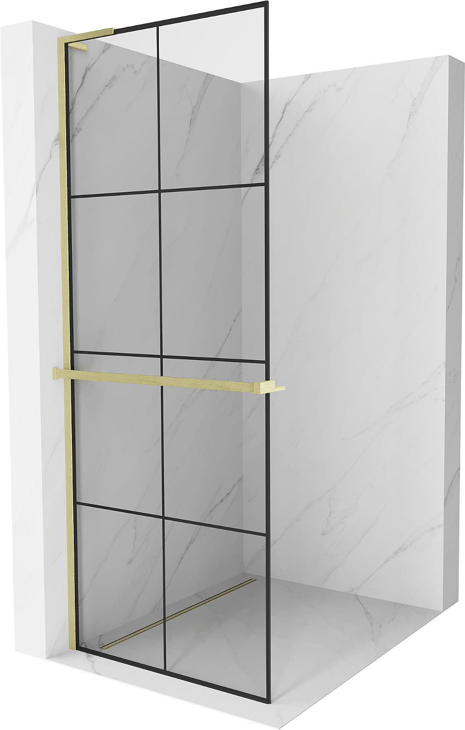 Mexen Kioto+ L shower panel with shelf Walk-in 90 x 200 cm, black grid, brushed gold - 800-090-123-55-77