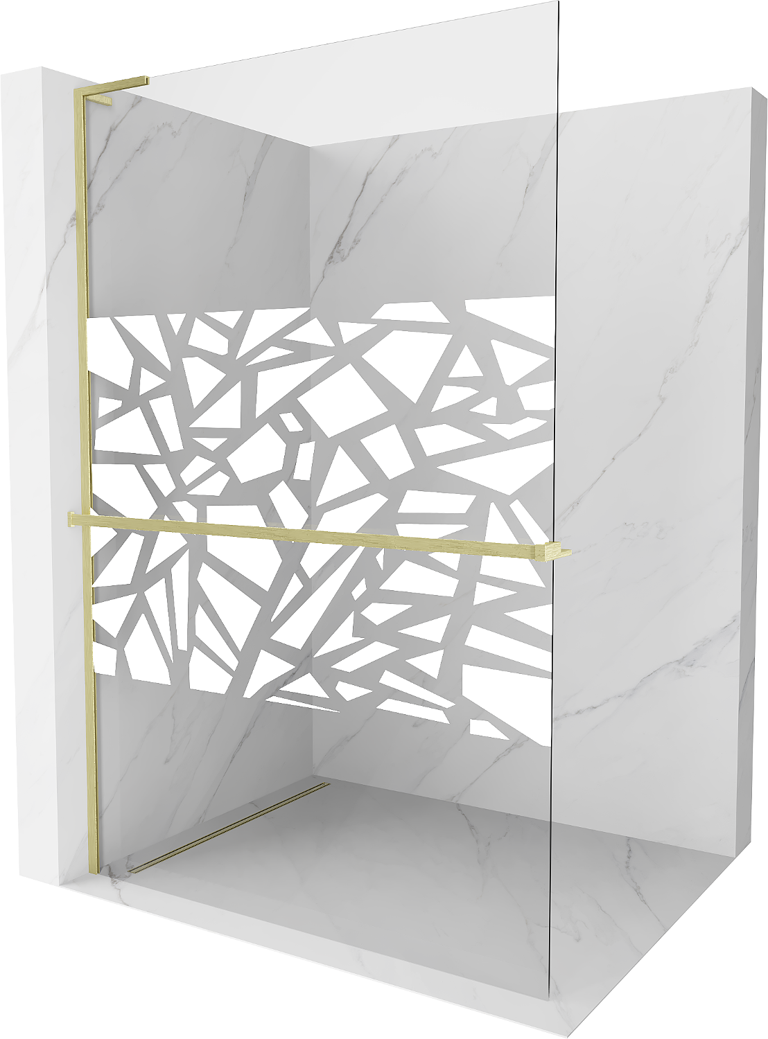 Mexen Kioto+ L shower wall with Walk-in shelf 100 x 200 cm, white pattern, brushed gold - 800-100-123-55-85