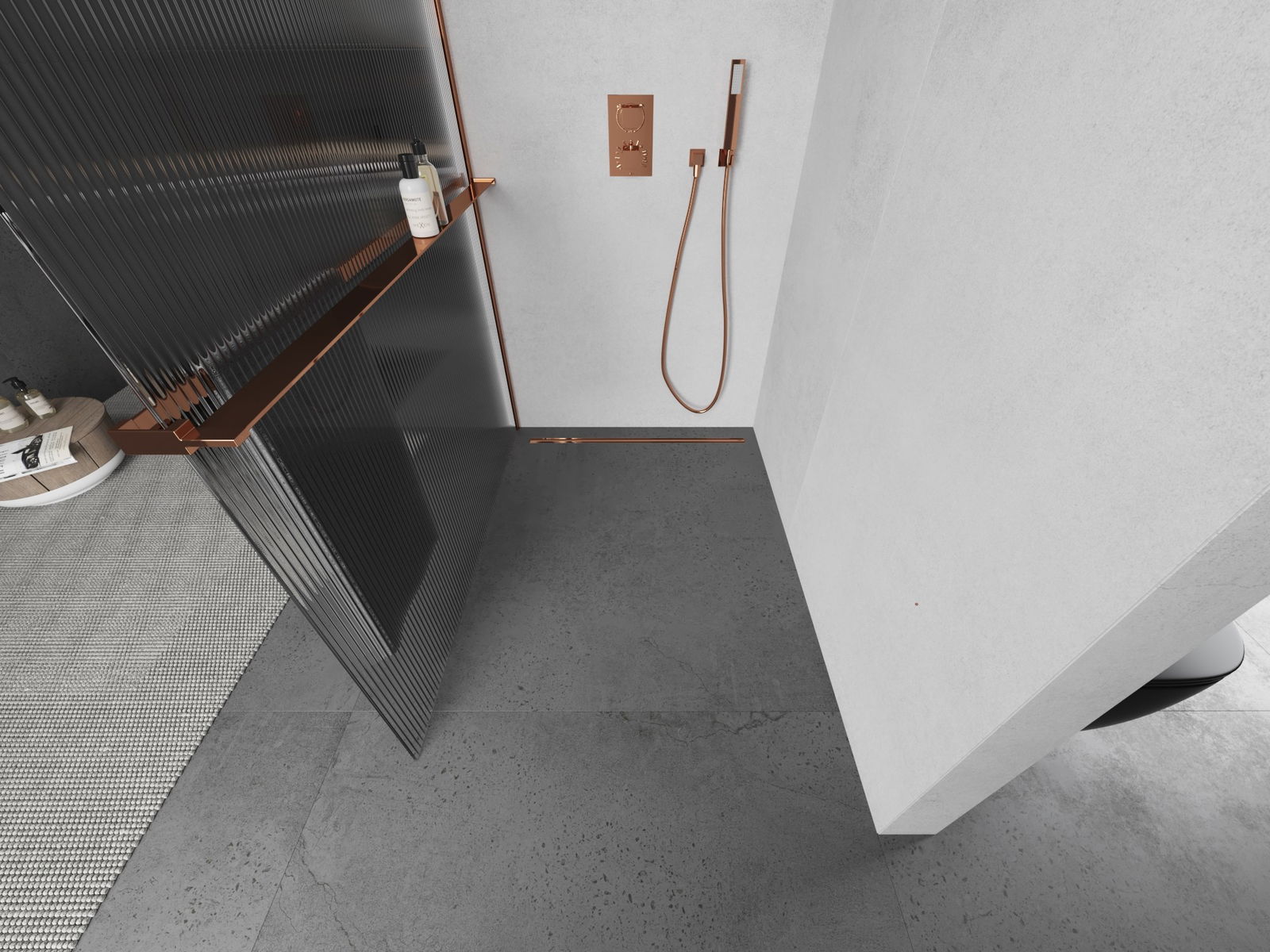 Mexen Kioto+ L Shower Wall with Shelf Walk-in 110 x 200 cm, Stripes, Rose Gold - 800-110-123-60-09