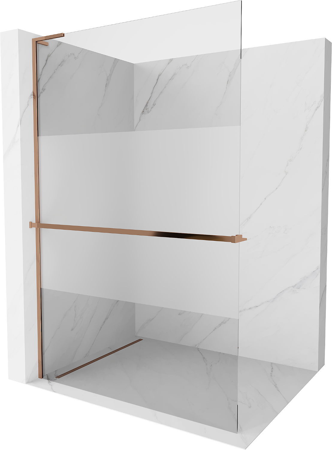 Mexen Kioto+ L Shower Wall with Shelf Walk-in 120 x 200 cm, Transparent/Frosted, Rose Gold - 800-120-123-60-35