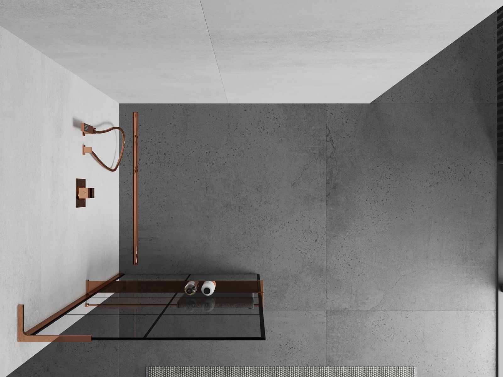 Mexen Kioto+ L shower wall with shelf Walk-in 90 x 200 cm, black grid, rose gold - 800-090-123-60-77