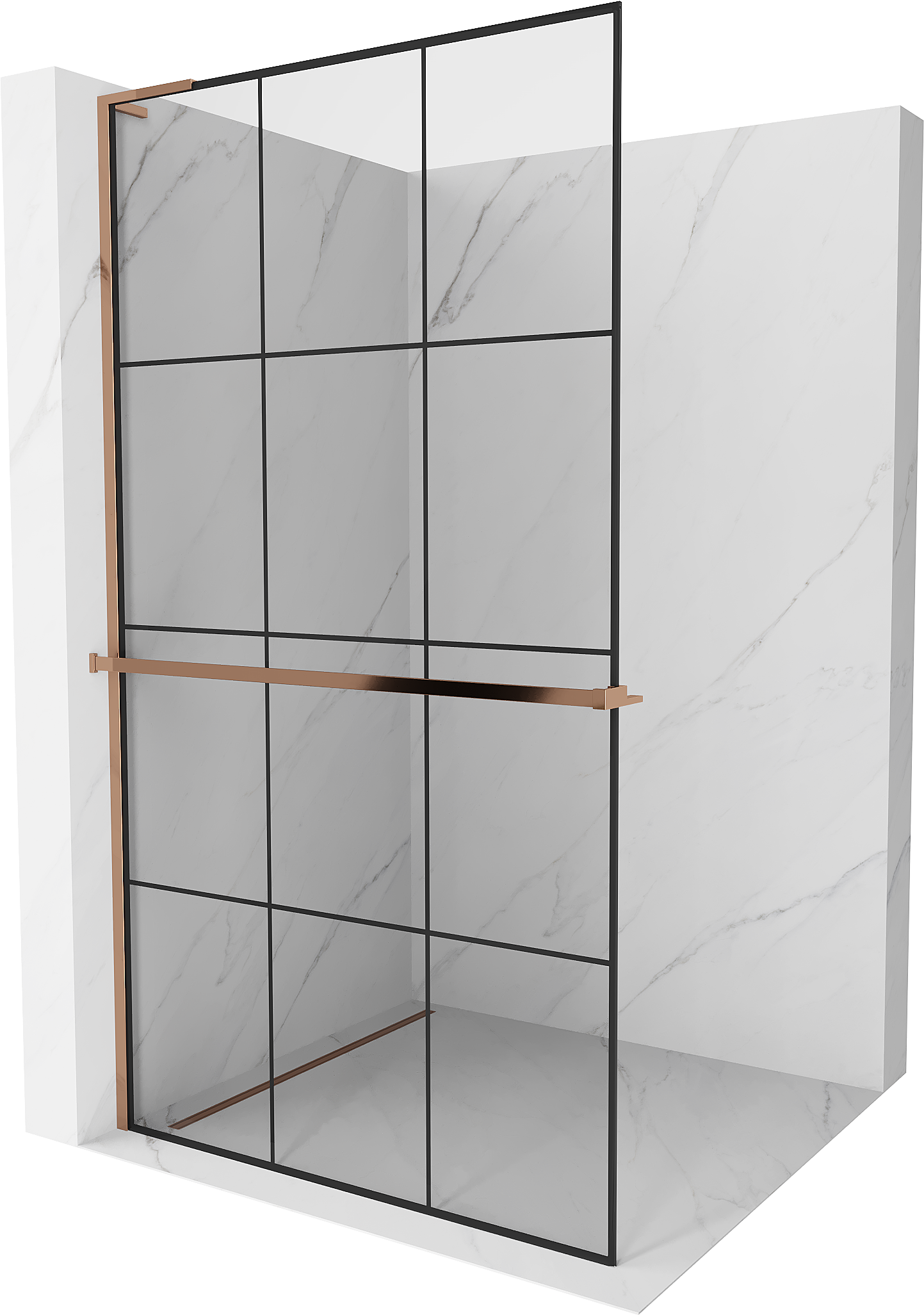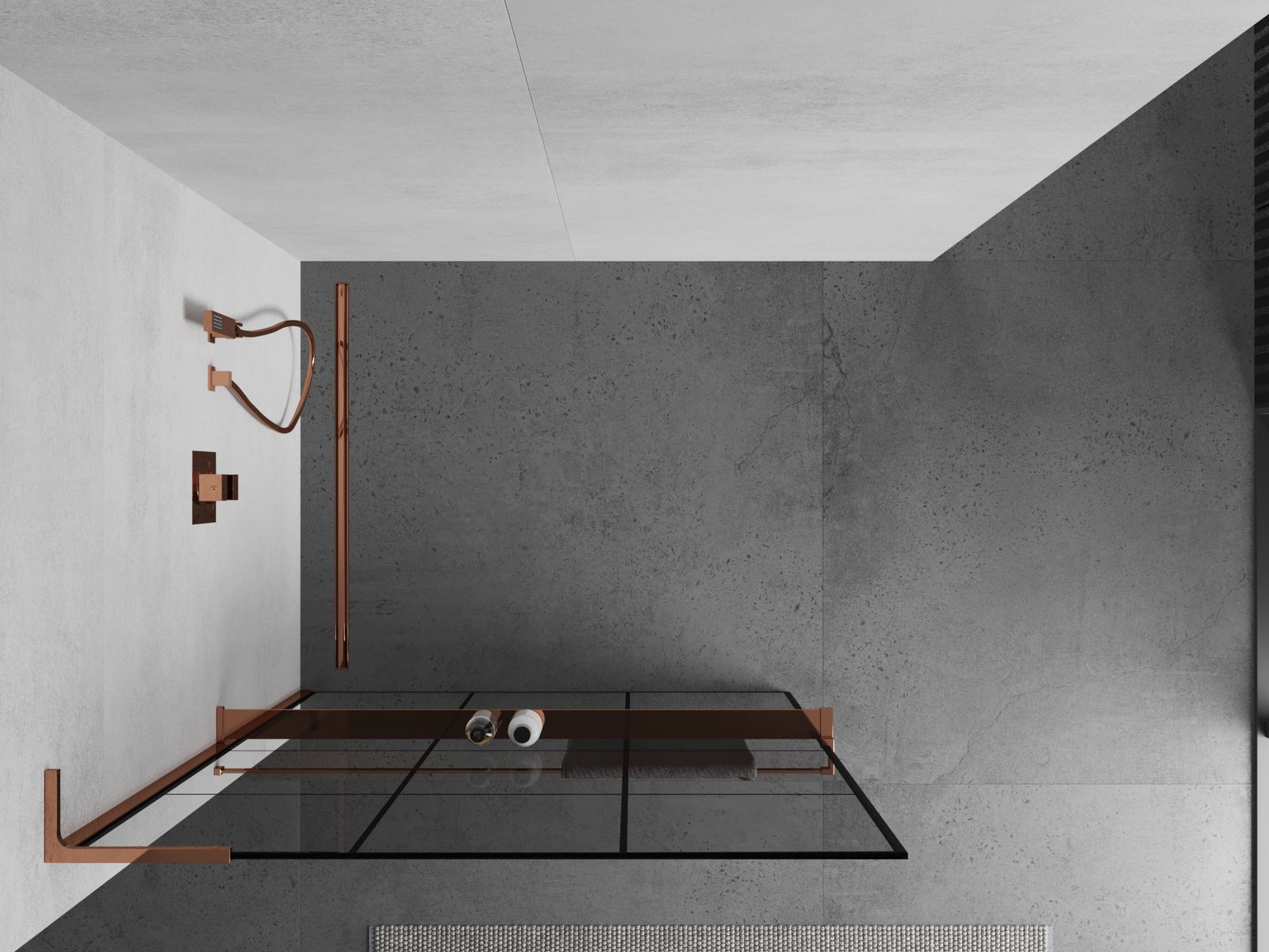Mexen Kioto+ L shower screen with Walk-in shelf 100 x 200 cm, black grid, rose gold - 800-100-123-60-77