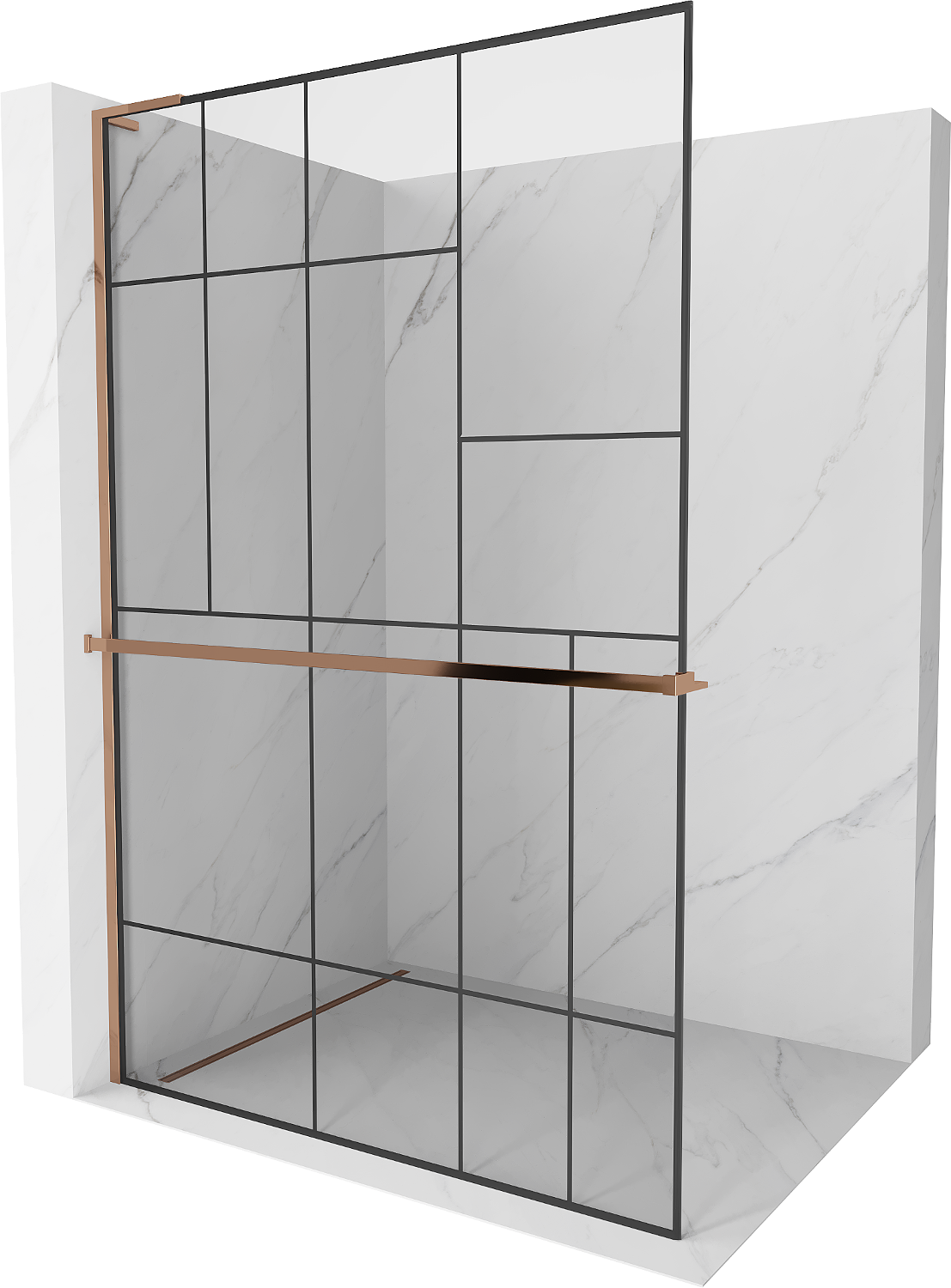 Mexen Kioto+ L shower wall with shelf Walk-in 70 x 200 cm, black pattern, rose gold - 800-070-123-60-78