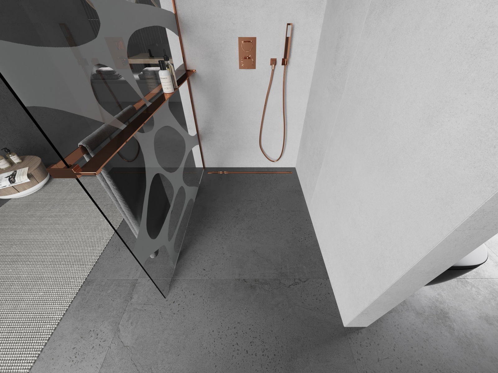 Mexen Kioto+ L shower screen with shelf Walk-in 70 x 200 cm, white wave, pink gold - 800-070-123-60-97