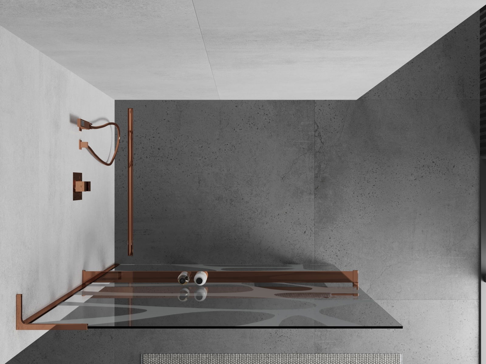 Mexen Kioto+ L shower panel with shelf Walk-in 80 x 200 cm, white wave, rose gold - 800-080-123-60-97
