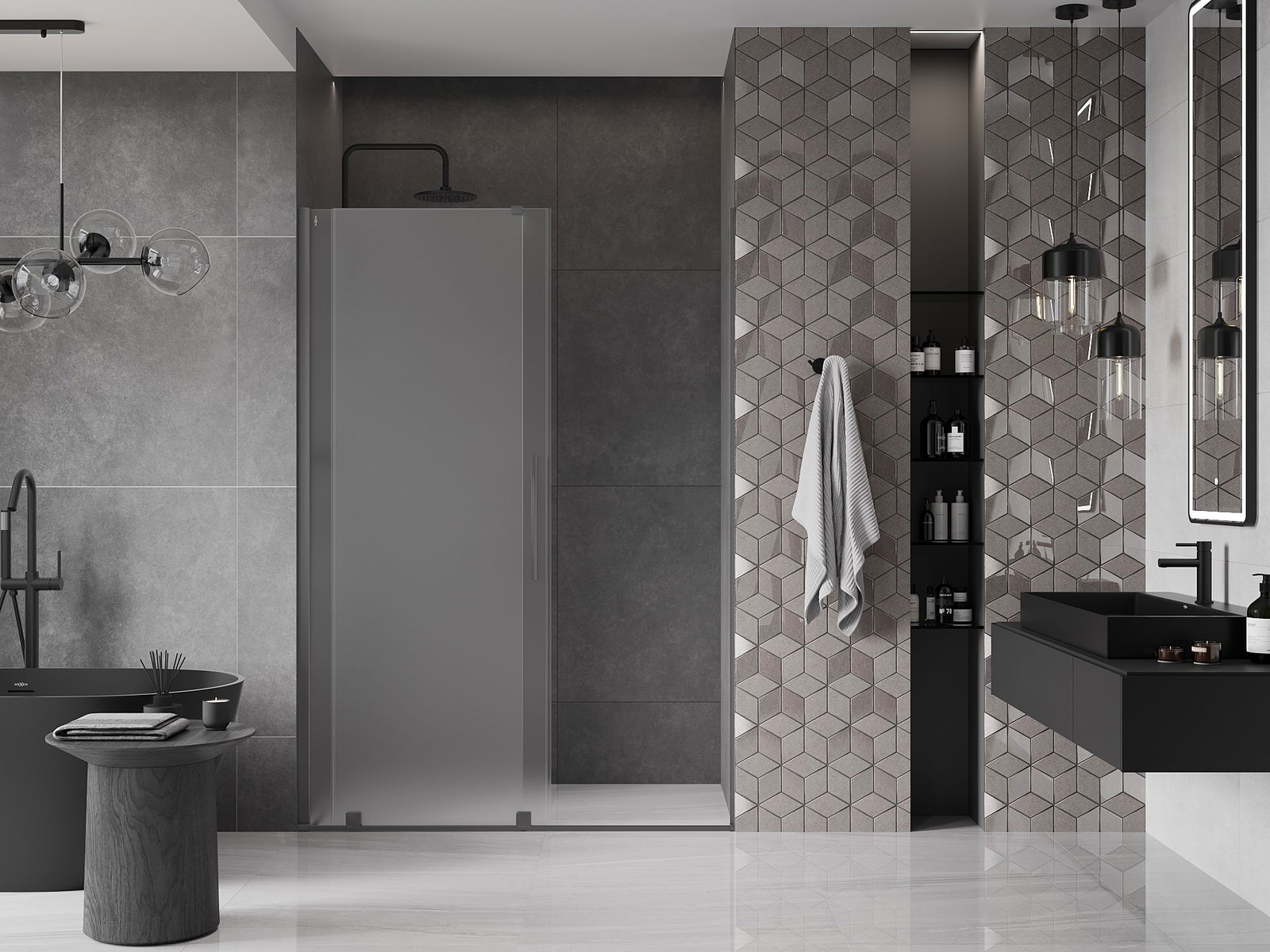 Mexen Velar 150 cm Sliding Shower Door, Frosted, Gun Metal - 871-150-000-31-95