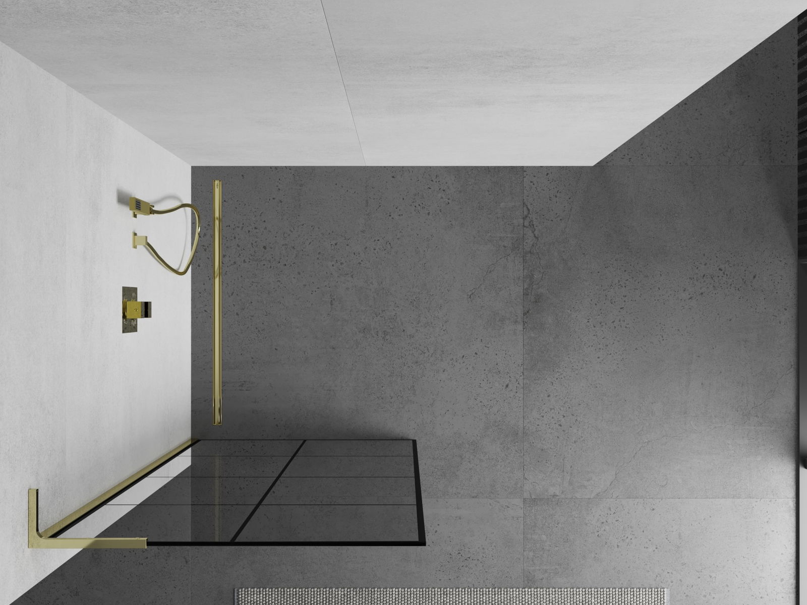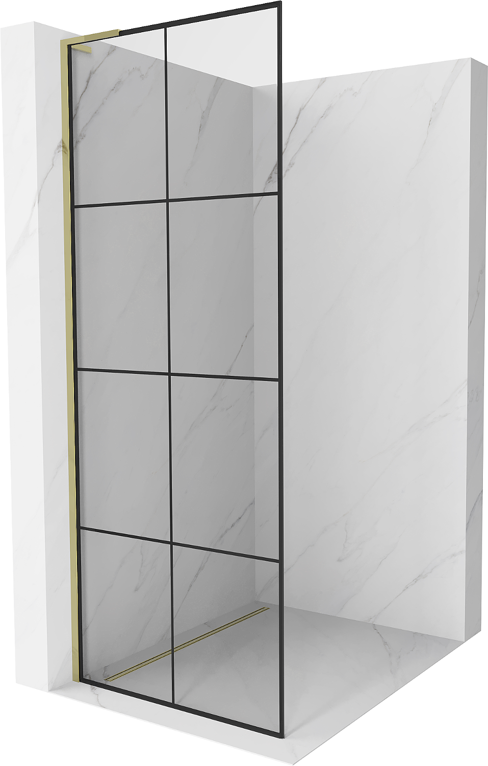 Mexen Kioto L Shower Wall Walk-in 80 x 200 cm, Black Grid, Gold - 800-080-103-50-77