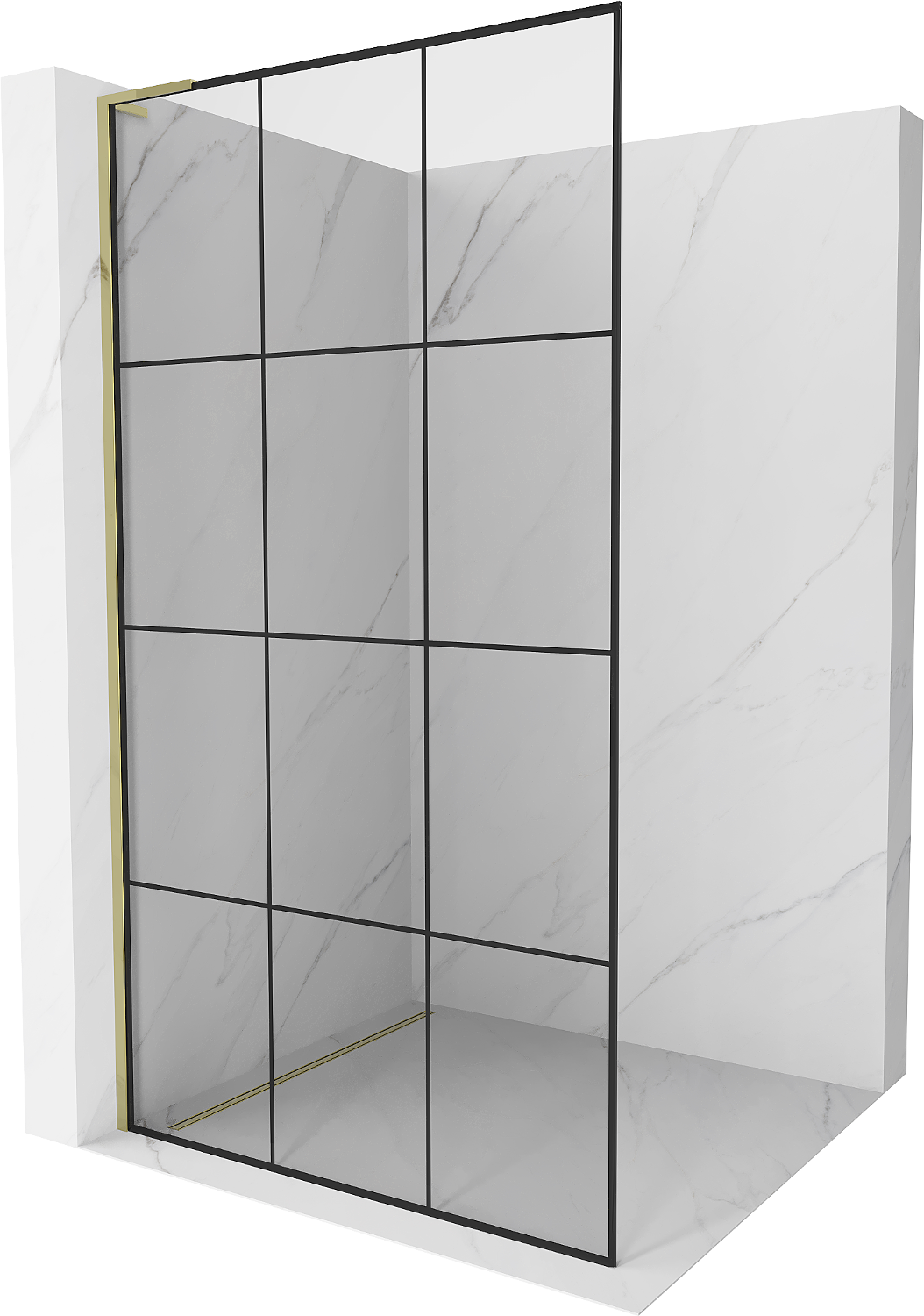 Mexen Kioto L Walk-in Shower Screen 110 x 200 cm, Black Grid, Gold - 800-110-103-50-77
