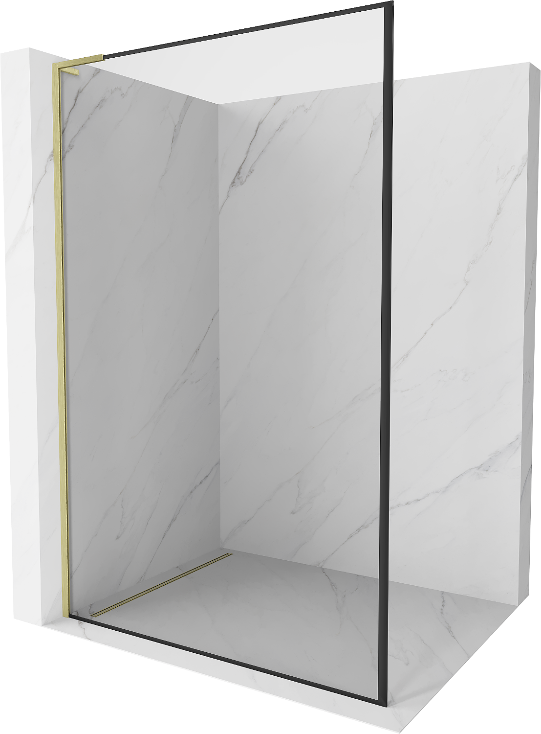 Mexen Kioto L Walk-in Shower Wall 60 x 200 cm, Black Frame, Brushed Gold - 800-060-103-55-70
