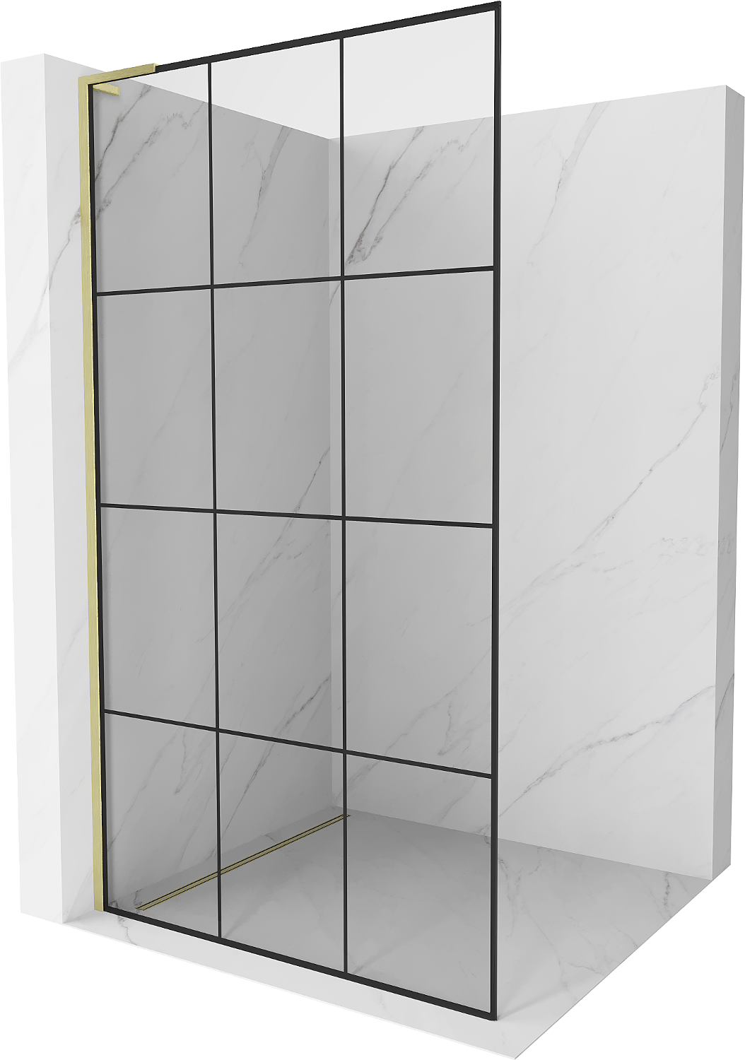 Mexen Kioto L Walk-in Shower Screen 120 x 200 cm, Black Grid, Brushed Gold - 800-120-103-55-77