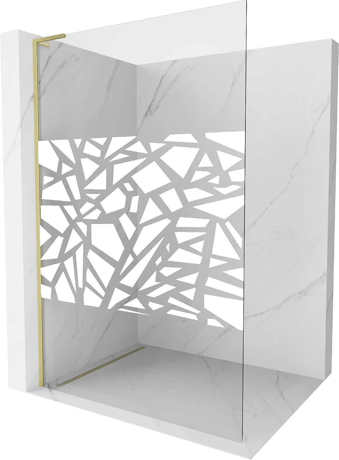 Mexen Kioto L shower panel Walk-in 110 x 200 cm, white pattern, brushed gold - 800-110-103-55-85