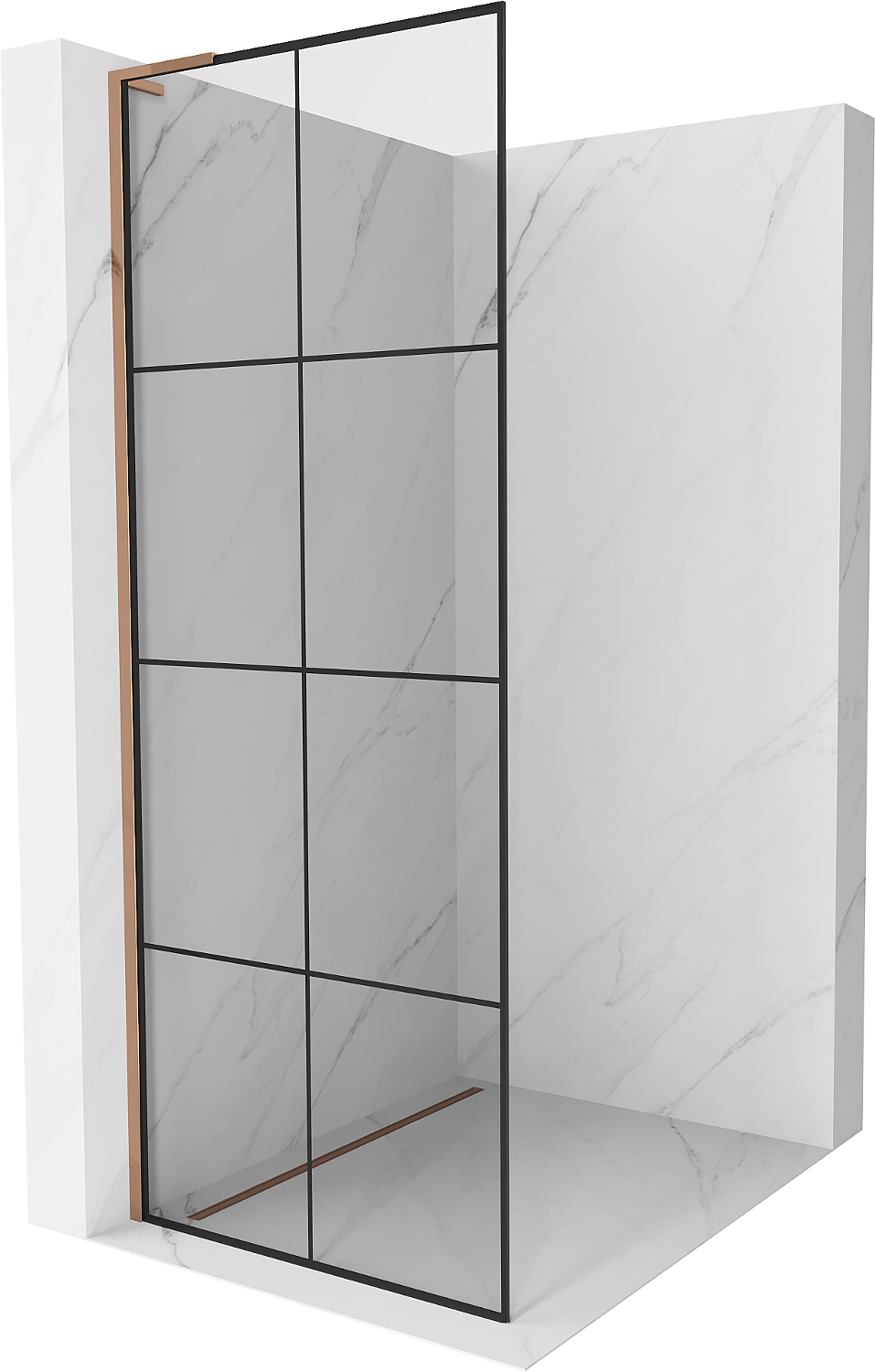 Mexen Kioto L Walk-in Shower Wall 90 x 200 cm, Black Grid, Rose Gold - 800-090-103-60-77