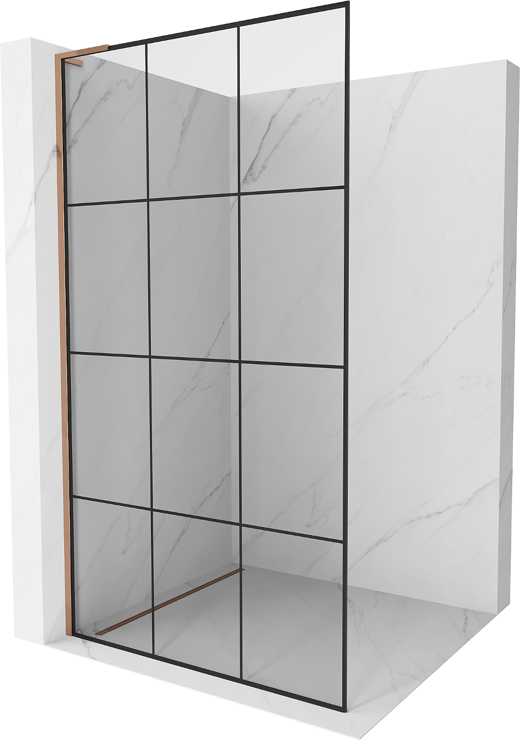 Mexen Kioto L Shower Wall Walk-in 100 x 200 cm, black grid, rose gold - 800-100-103-60-77