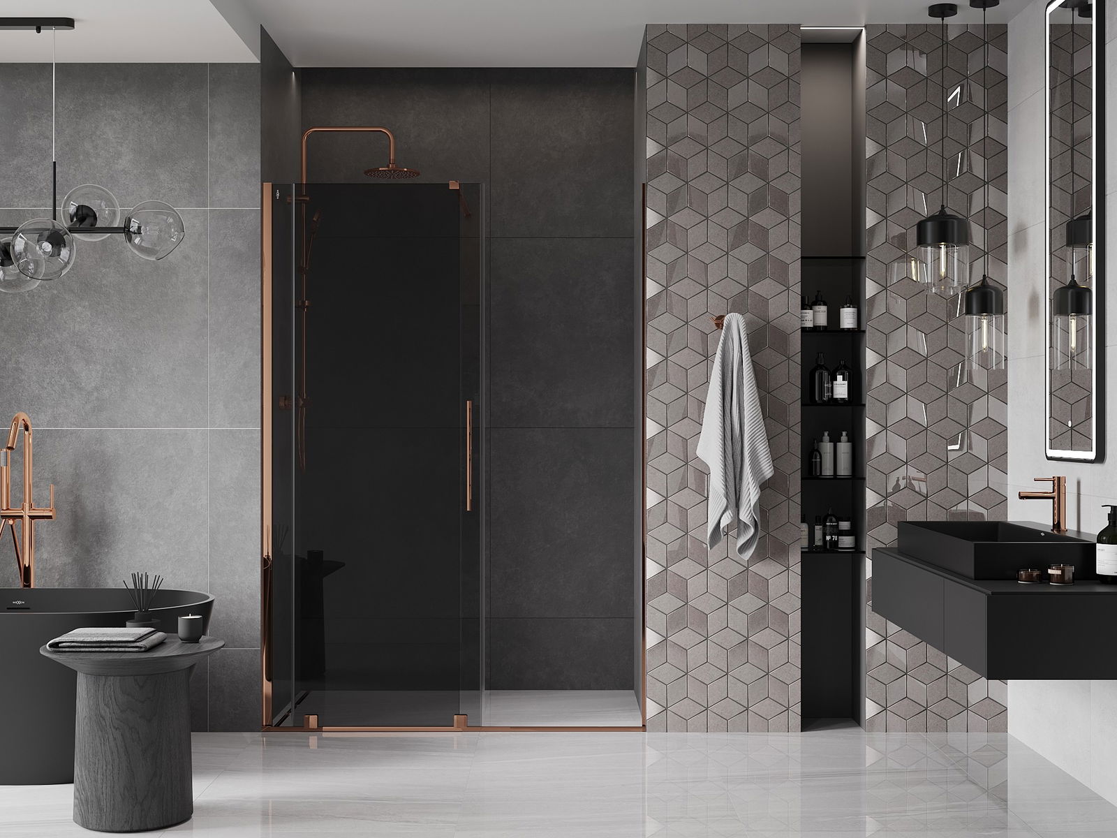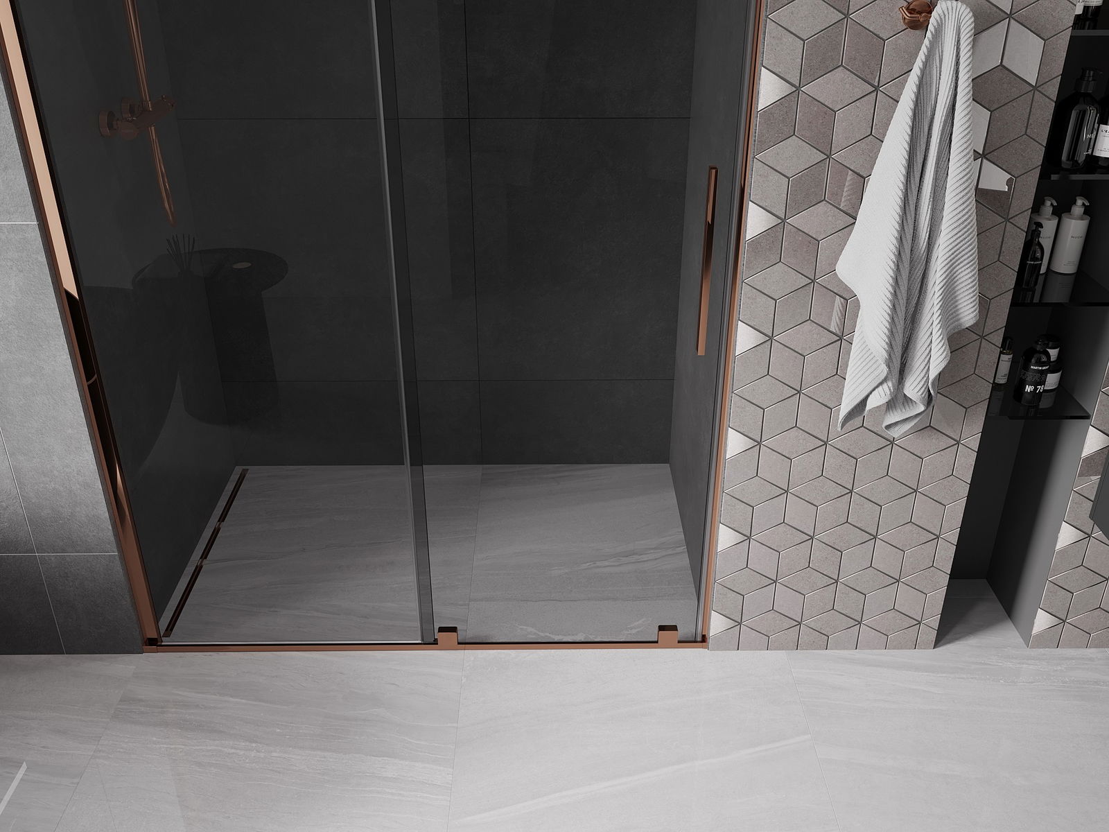 Mexen Velar Sliding Shower Doors 130 cm, Graphite, Rose Gold - 871-130-000-41-60