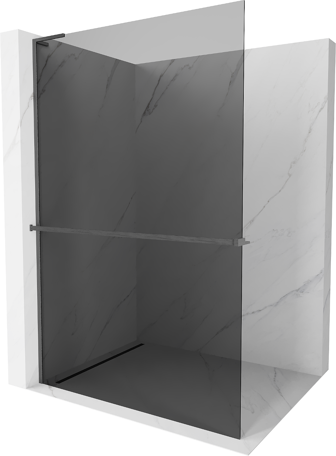 Mexen Kioto+ L Shower Screen with Shelf Walk-in 110 x 200 cm, Graphite, Brushed Gun Gray - 800-110-123-66-40