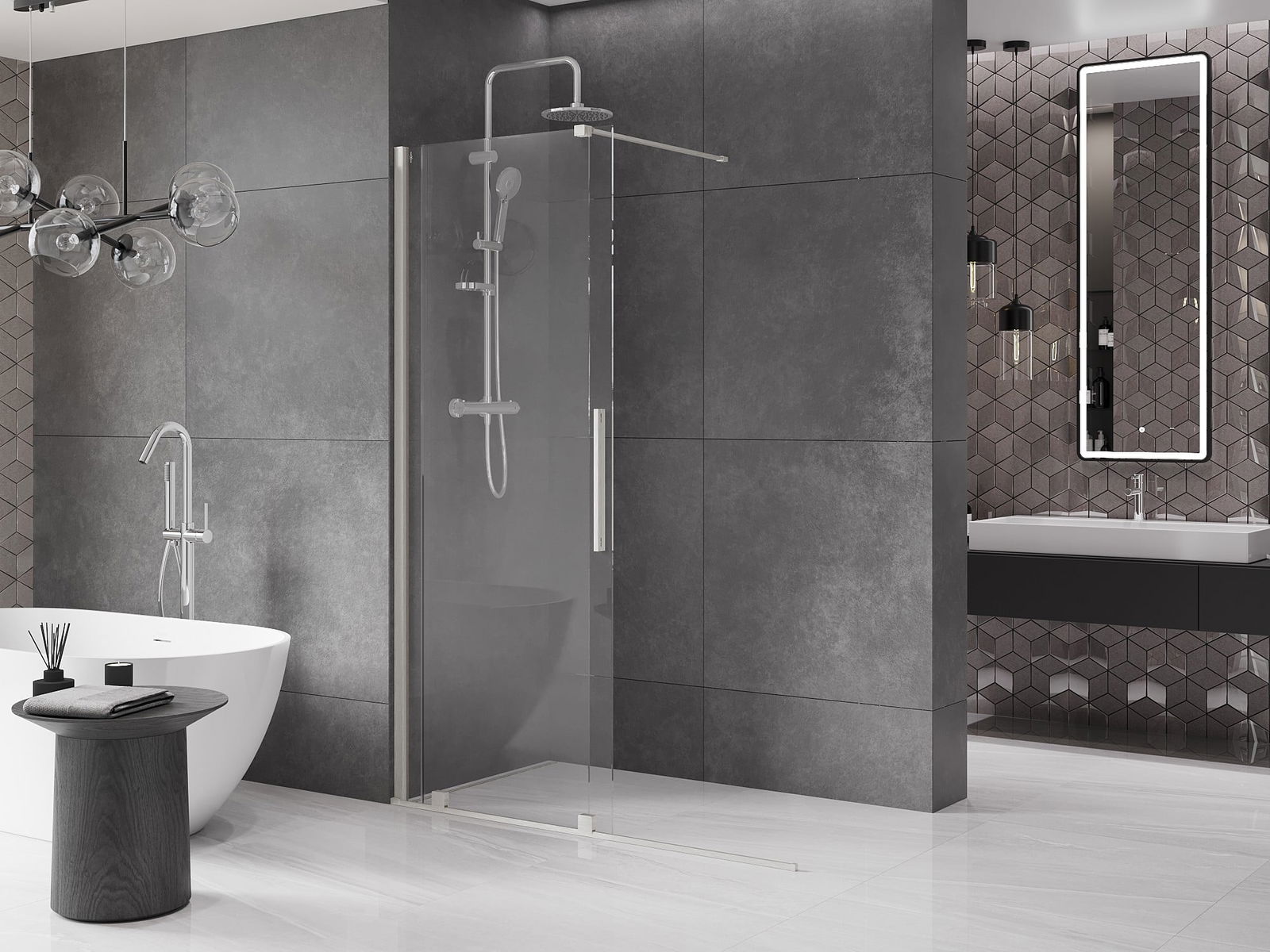 A sliding shower wall is an excellent solution for modern bathrooms, allowing you to save space while providing easy access to the shower and maintaining an aesthetic appearance.