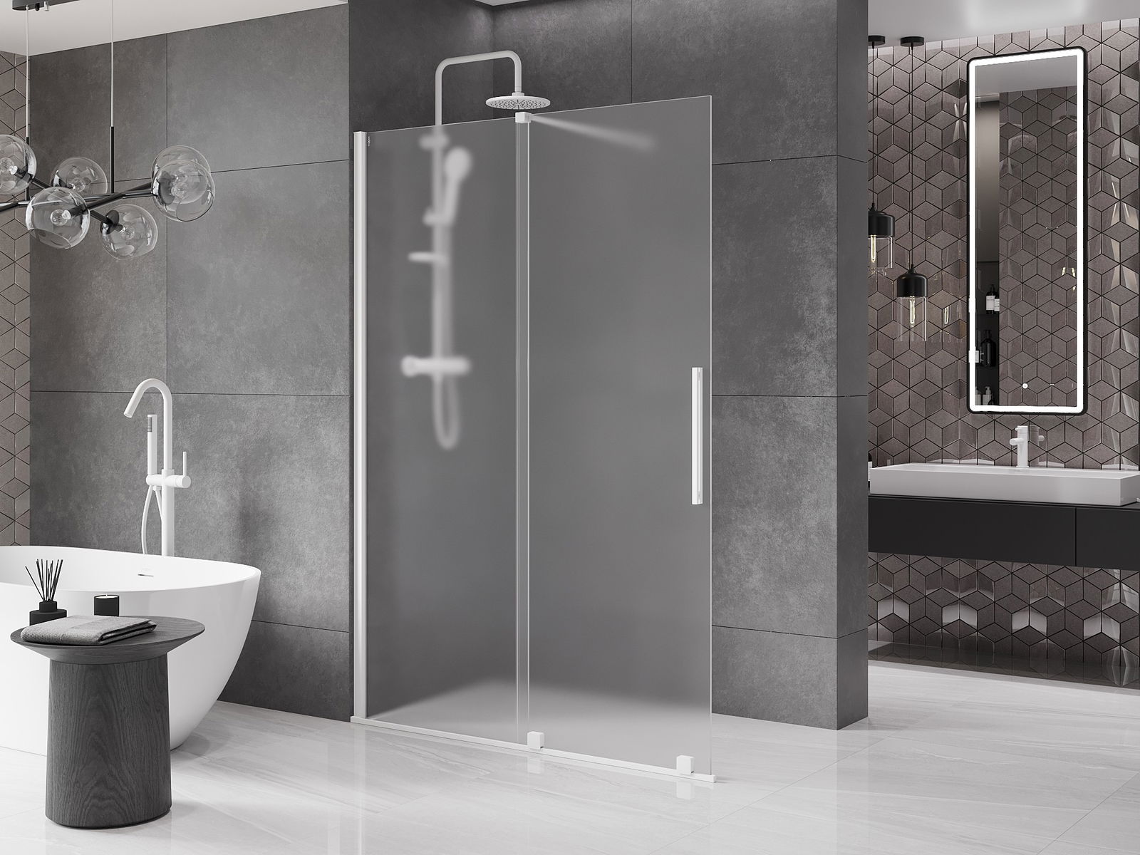 Mexen Velar sliding shower wall Walk-in 140 x 200 cm, frost 8 mm, white - 871-140-000-33-20