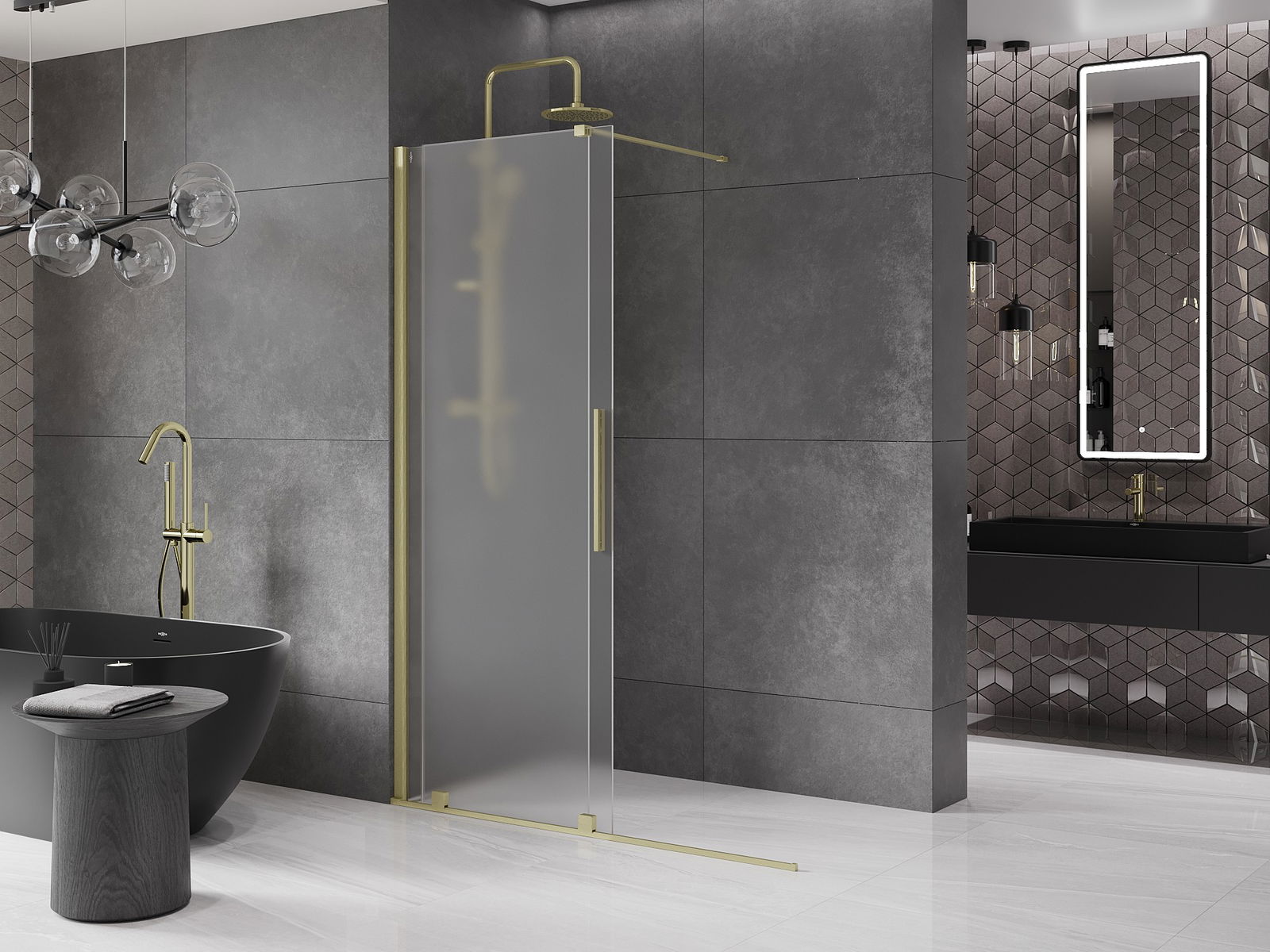 Mexen Velar sliding shower wall Walk-in 130 x 200 cm, frosted 8 mm, brushed gold - 871-130-000-33-55
