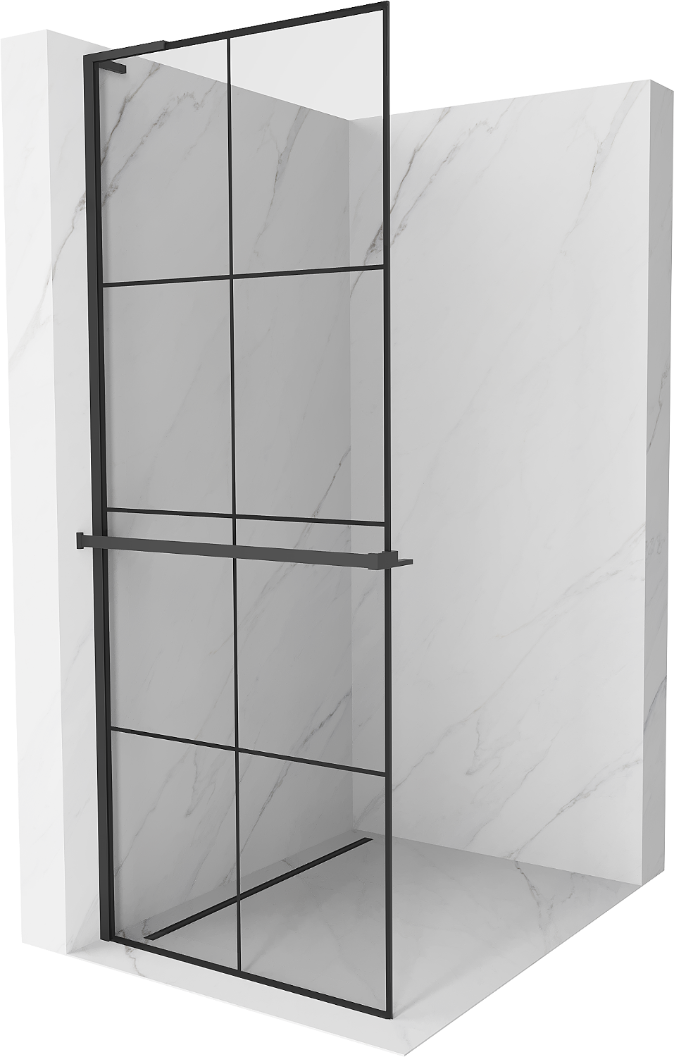 Mexen Kioto+ L shower wall with shelf Walk-in 90 x 200 cm, black grid, black - 800-090-123-70-77