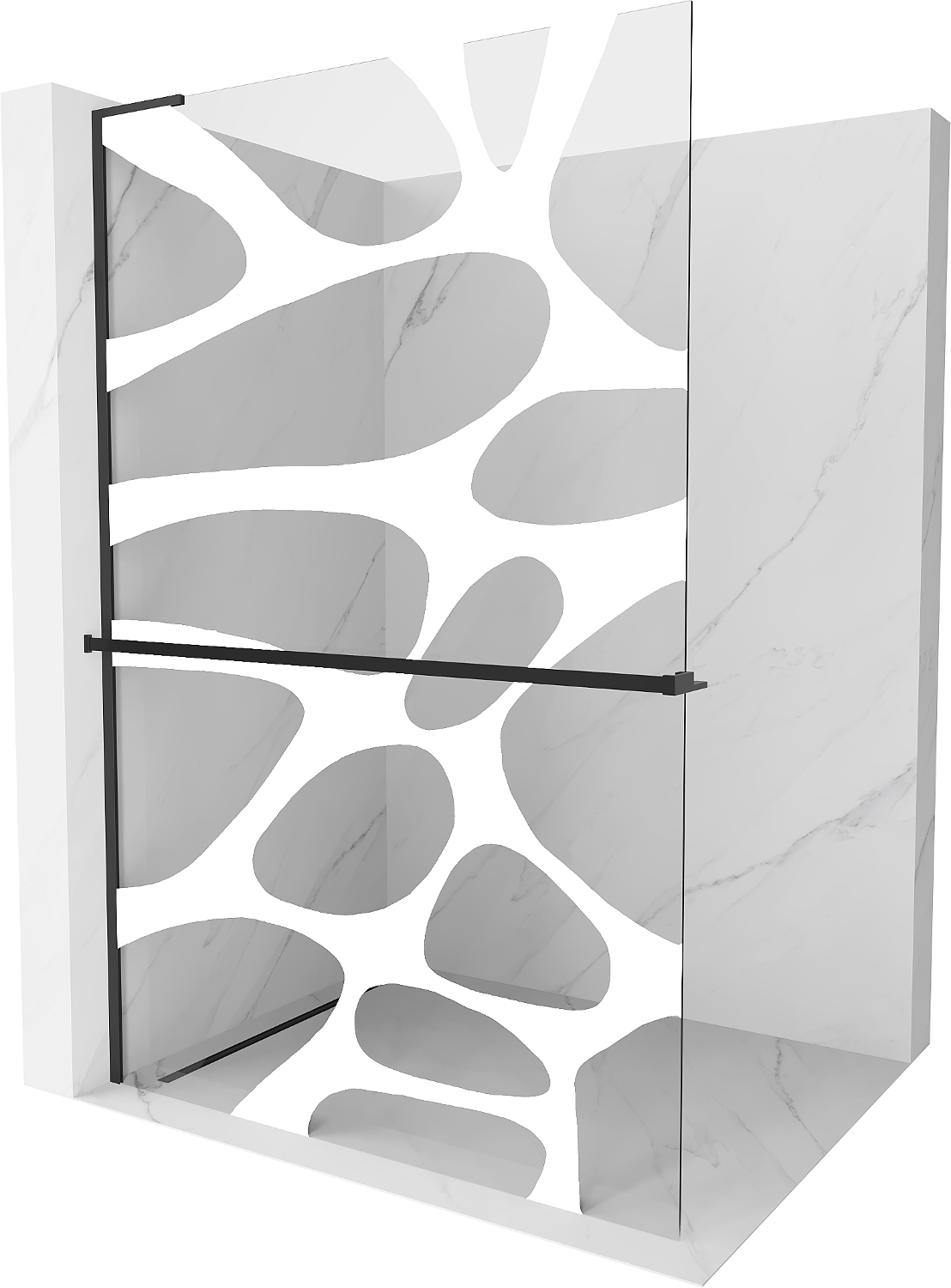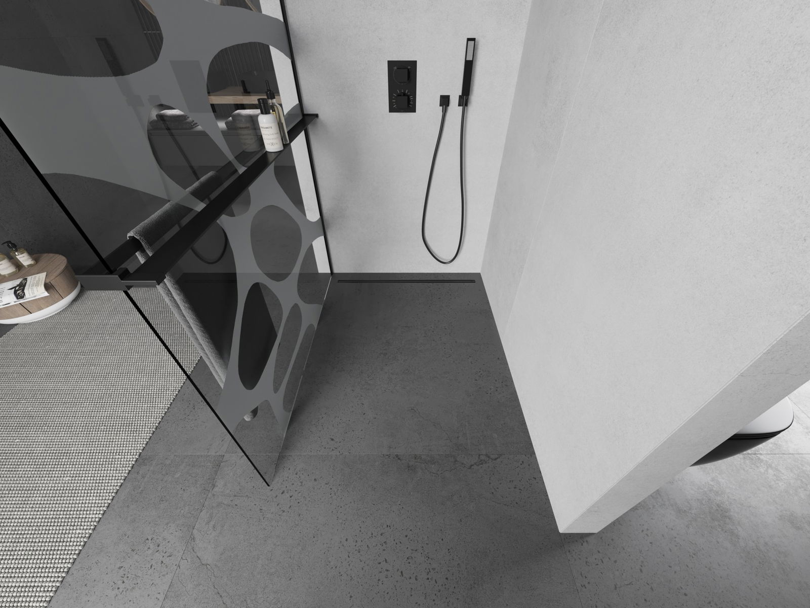 Mexen Kioto+ L Shower Screen with Walk-in Shelf 100 x 200 cm, White Wave, Black - 800-100-123-70-97