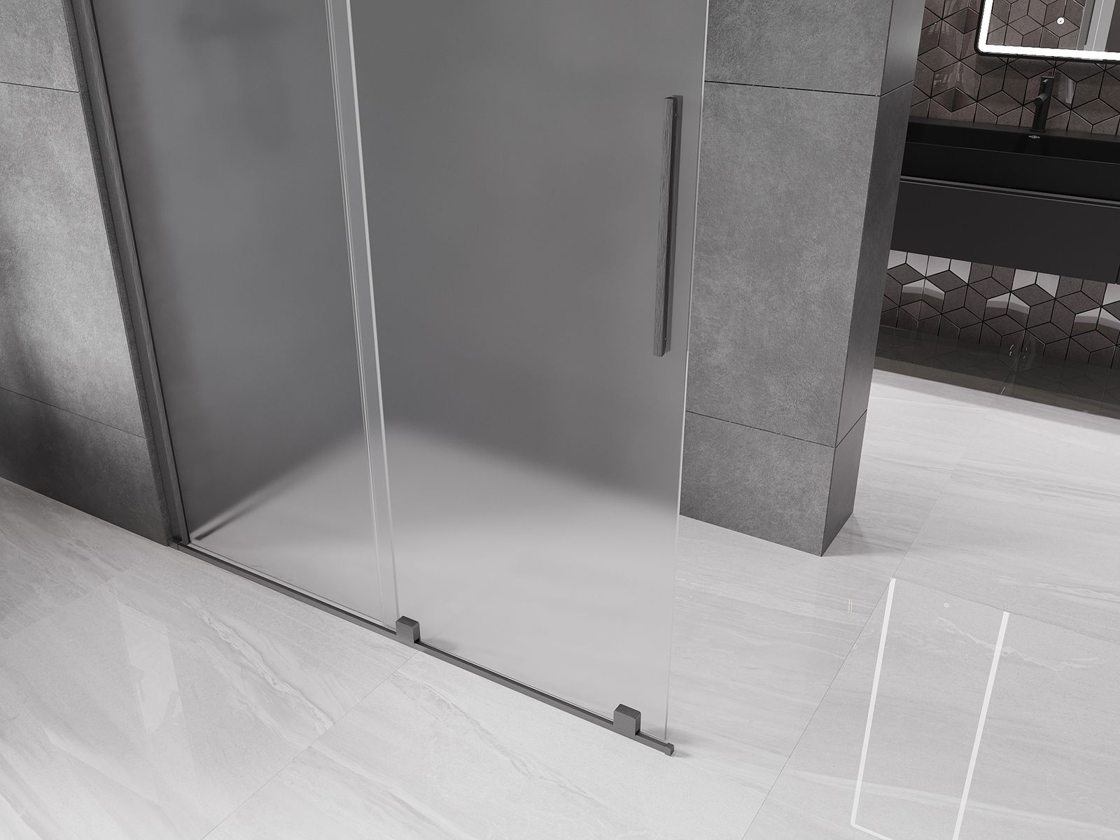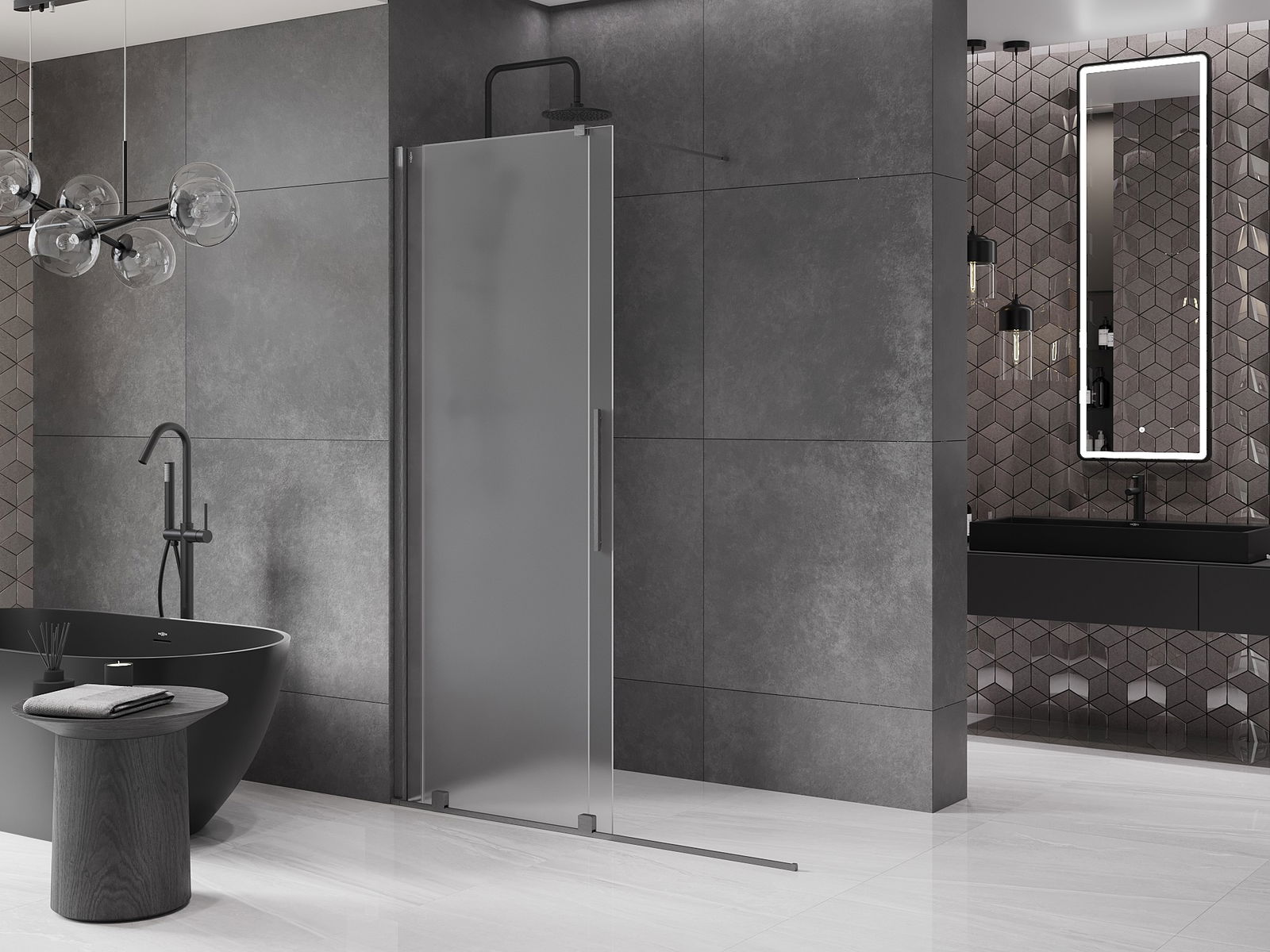 Mexen Velar sliding shower wall Walk-in 160 x 200 cm, frost 8 mm, brushed gun gray - 871-160-000-33-66