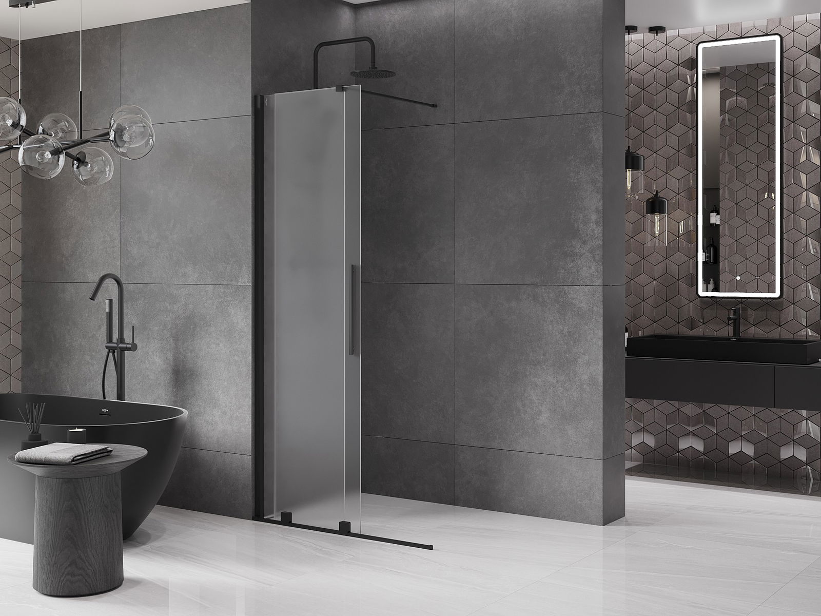 Mexen Velar Sliding Shower Wall Walk-in 85 x 200 cm, Frosted 8 mm, Black - 871-085-000-33-70