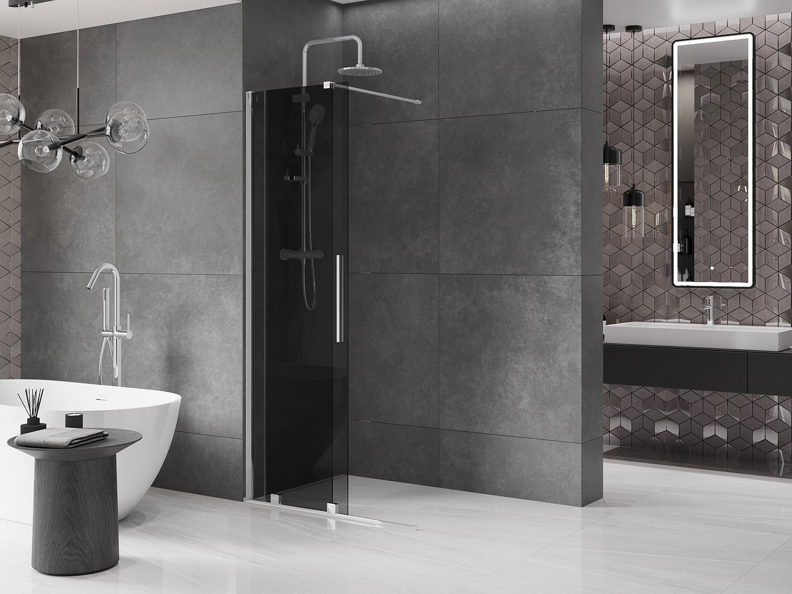 Mexen Velar Walk-in Sliding Shower Wall 80 x 200 cm, Graphite 8 mm, Chrome - 871-080-000-43-01