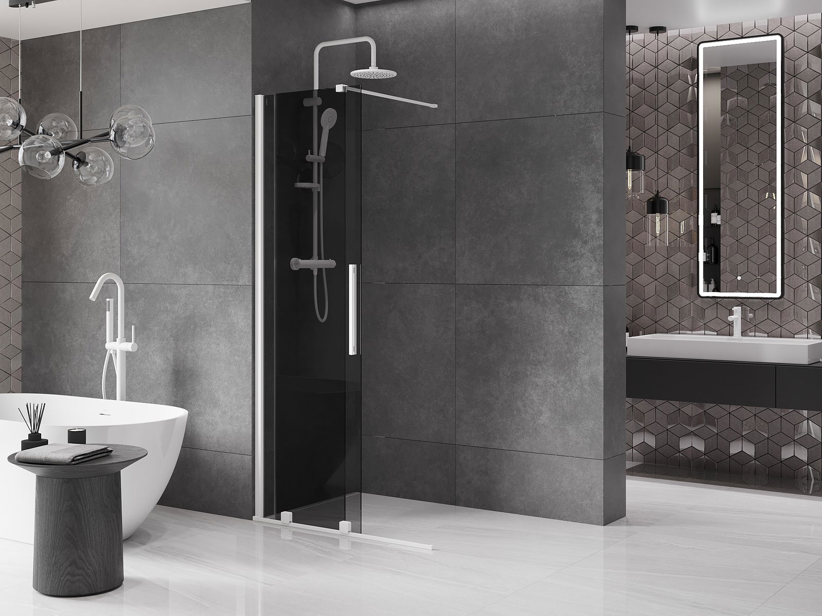 Mexen Velar sliding shower wall Walk-in 100 x 200 cm, graphite 8 mm, white - 871-100-000-43-20