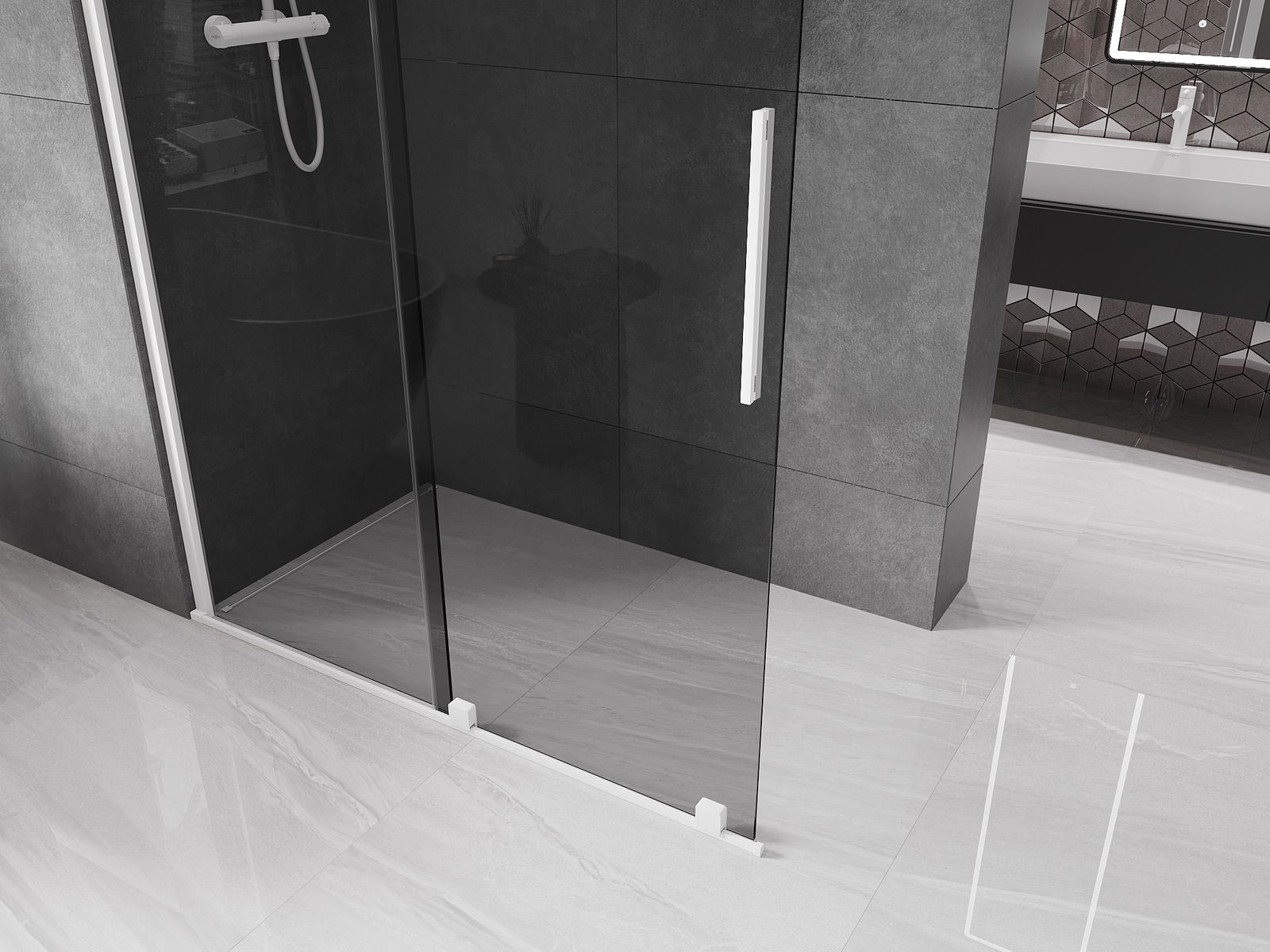 Mexen Velar sliding shower wall Walk-in 130 x 200 cm, graphite 8 mm, white - 871-130-000-43-20