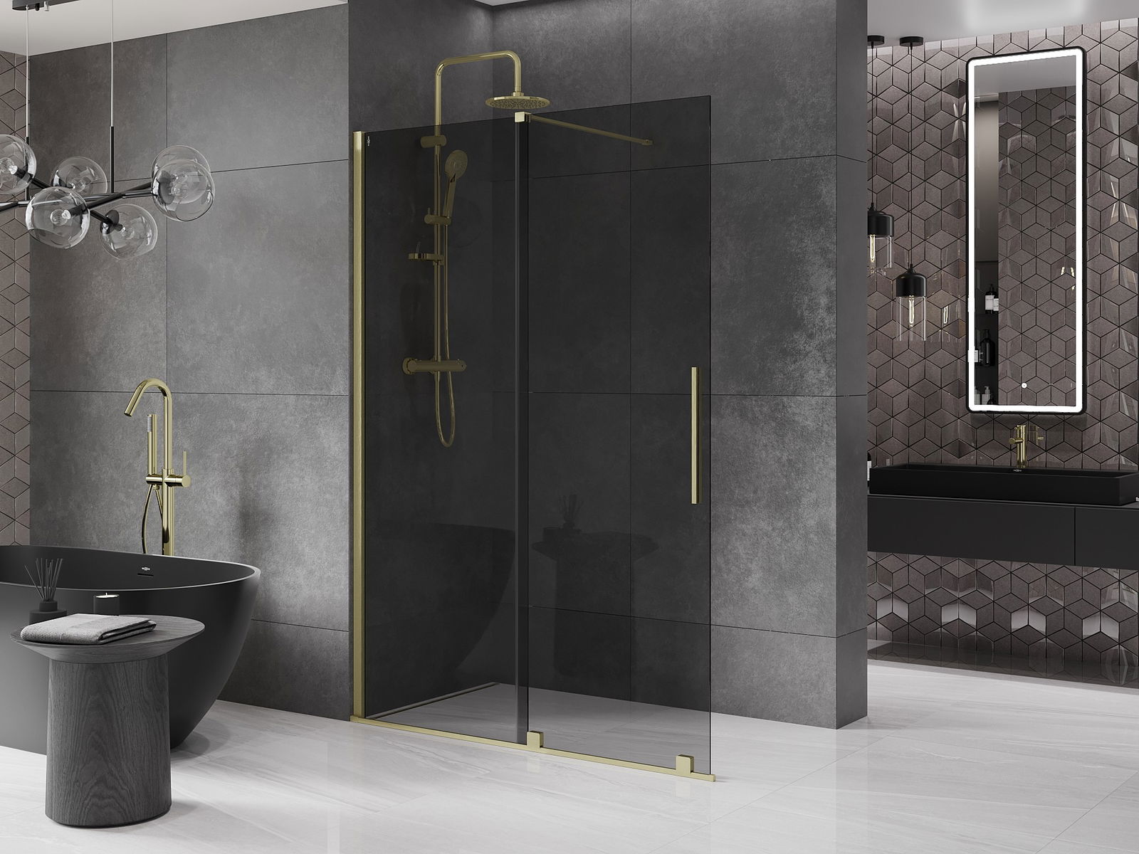 Mexen Velar sliding shower wall Walk-in 140 x 200 cm, graphite 8 mm, brushed gold - 871-140-000-43-55