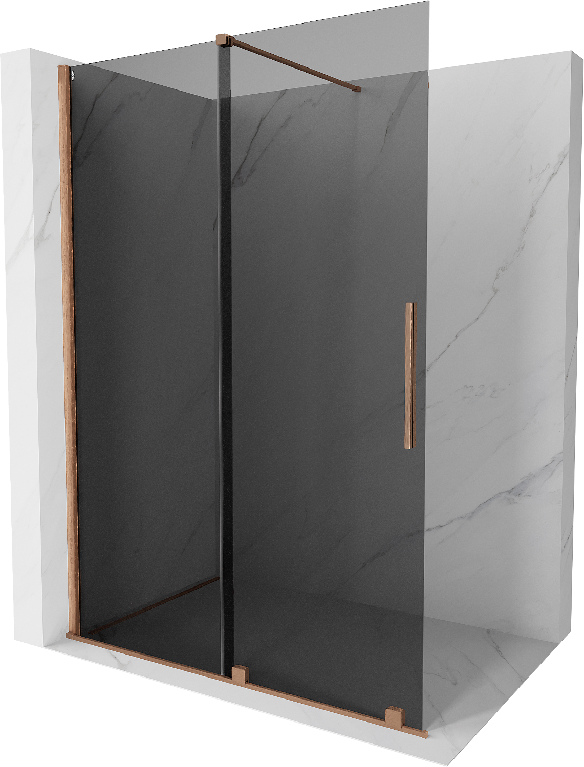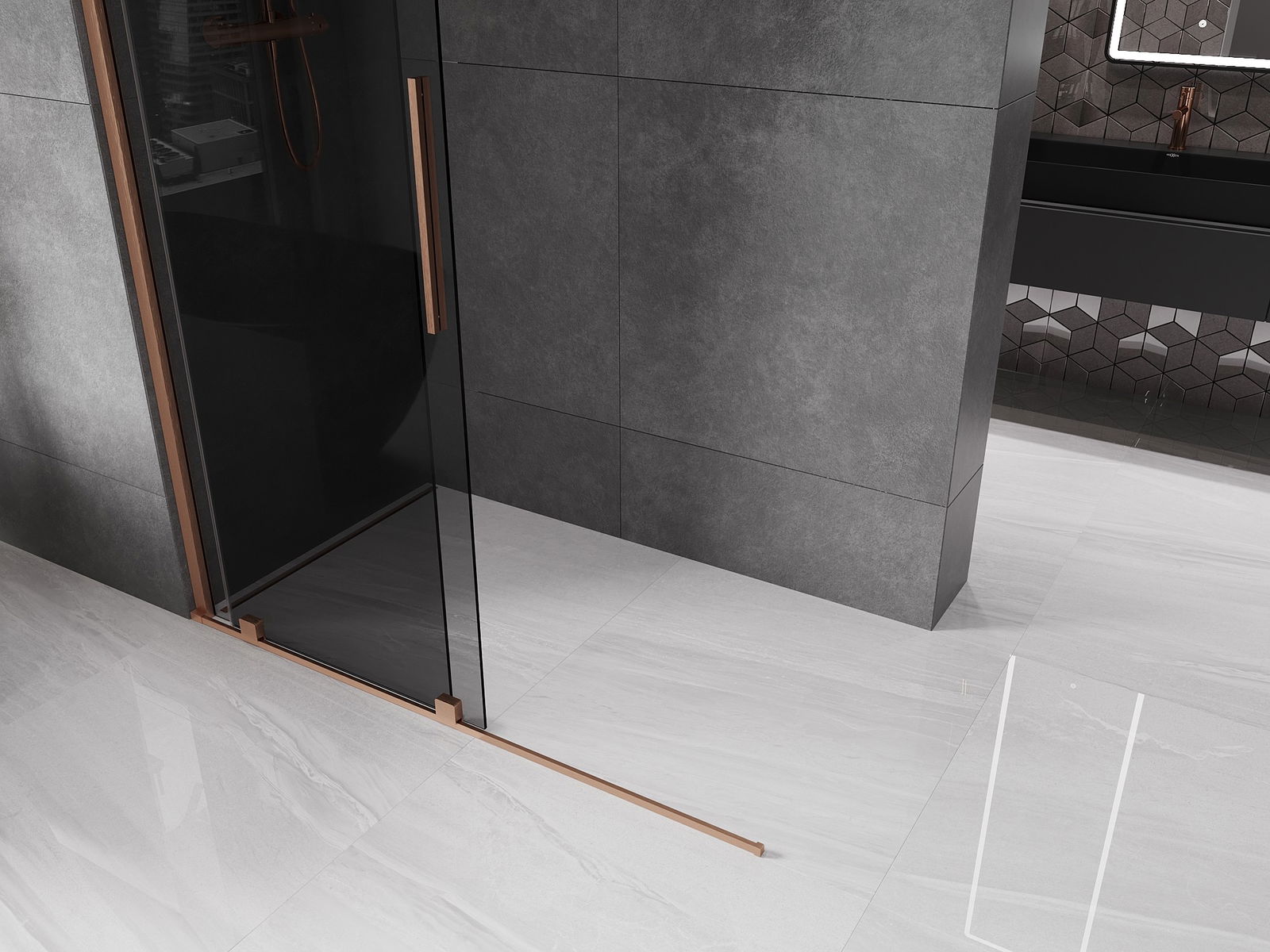Mexen Velar sliding shower wall Walk-in 140 x 200 cm, graphite 8 mm, brushed copper - 871-140-000-43-65