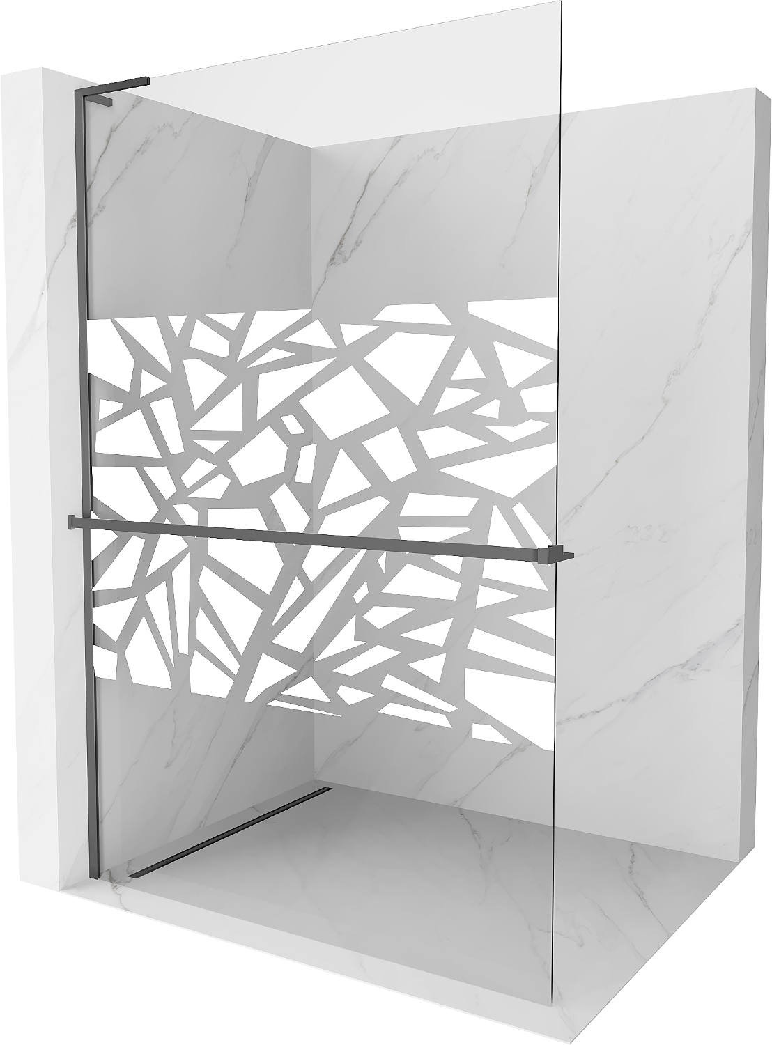 Mexen Kioto+ L shower panel with shelf Walk-in 80 x 200 cm, white pattern, gun metal - 800-080-123-95-85