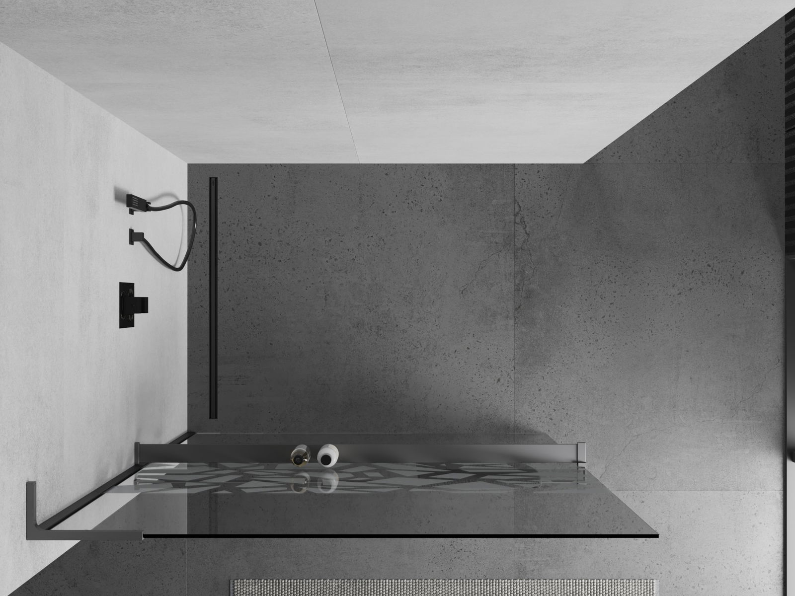 Mexen Kioto+ L Shower Screen with Shelf Walk-in 100 x 200 cm, White Pattern, Gun Metal - 800-100-123-95-85