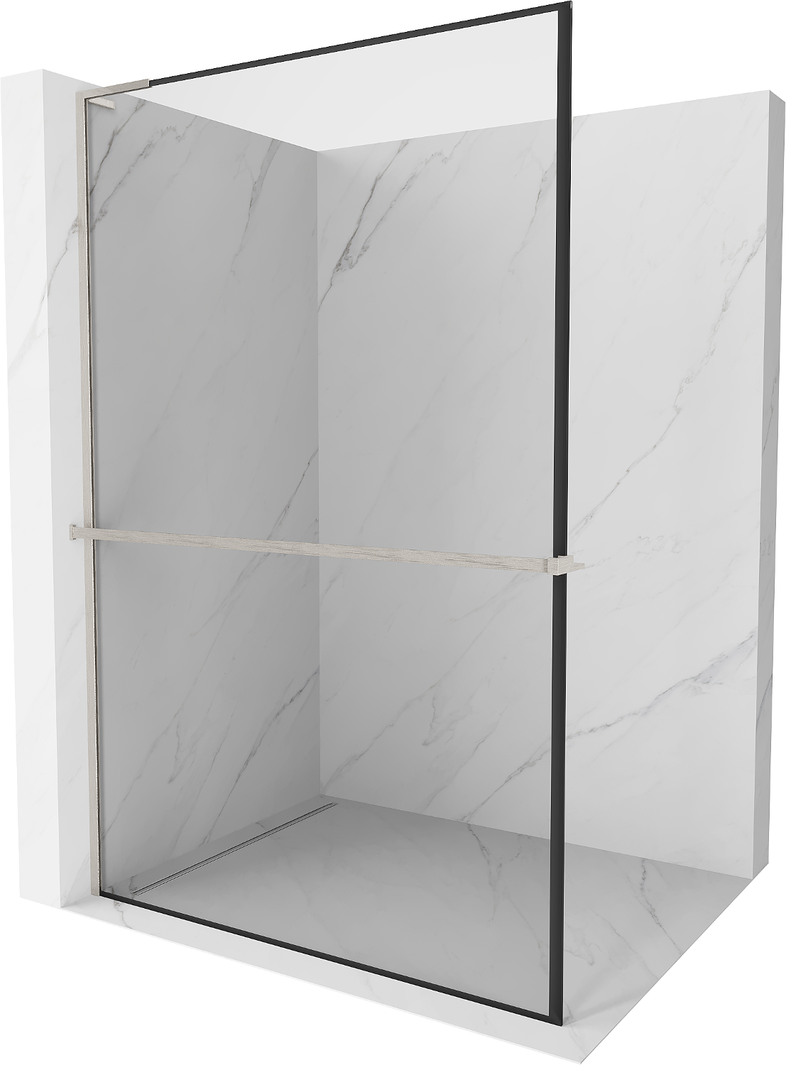 Mexen Kioto+ L Shower Screen with Shelf Walk-in 100 x 200 cm, Black Frame, Brushed Nickel - 800-100-123-97-70