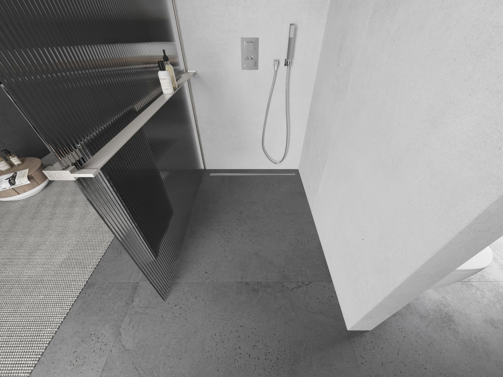 Mexen Kioto+ L shower wall with shelf Walk-in 110 x 200 cm, stripes, brushed nickel - 800-110-123-97-09
