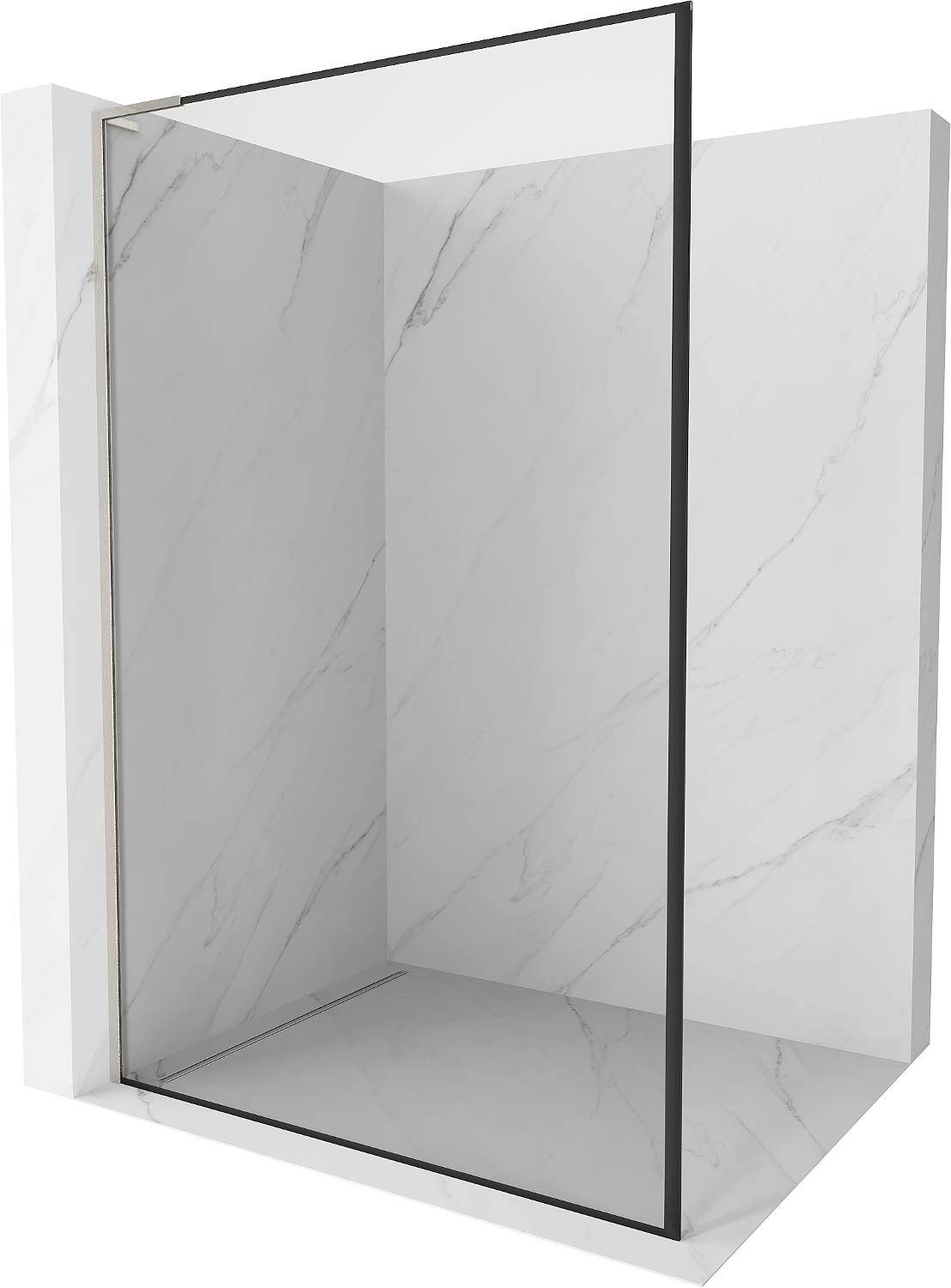 Mexen Kioto L Walk-in Shower Wall 70 x 200 cm, black frame, brushed nickel - 800-070-103-97-70